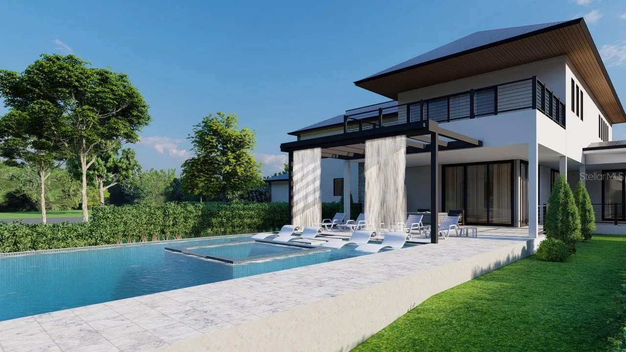 Pre-Construction. To be built. Why choose between your perfect sanctuary and stunning sunsets when you can have both. Every evening, the horizon performs a breathtaking masterpiece and from your private terrace at 3950 Red Rock Way, you hold the best seat in the house. Set upon a rare half-acre waterfront lot with 50 feet of frontage on Roberts Bay, this 6,850-square-foot modern coastal estate captures the essence of Sarasota luxury: enchanting artistry, seductive serenity, and a seamless connection to water and light. This new-construction residence, designed for those who refuse to compromise beauty for function, rises with quiet confidence above manicured grounds. A private courtyard garden greets you—tranquil, lush, and softly lit. Inside, 12-foot ceilings and walls of glass erase the boundary between indoors and out, filling each space with western light that glows from sunrise to sunset. Warmed by dual fireplaces, the heart of the home flows through a grand open living area. The chef’s kitchen, a pristine and stylish space for guests, is anchored by Miele appliances, two sculptural islands and features a well-appointed scullery, the engine that drives a flawless entertaining experience. A whisper of a push opens the retractable glass, where the world outside becomes part of the home and reveals the infinity-edge pool where the horizon of the pool disappears into the bay. The surrounding terraces are intended for sun, laughter, and unforgettable evenings under painted skies. This residence offers five bedrooms, including two primary suites, each a world of privacy and refinement with spa-inspired baths, water views, and terraces that invite the morning breeze. A dedicated gym and flex space await your vision—transform it into a golf simulator, media lounge, or wellness retreat. The custom wine cellar stands ready for your finest vintages, while a five-car garage accommodates every passion you choose to explore. Beyond luxury lies peace of mind: a new dock with double jet ski lift, elevator, whole-home generator, and the enduring protection of superior and meticulous modern construction. As twilight settles over Roberts Bay, the pool catches the last light, and the sound of water laps softly at the shore. Here, time slows, your world quiets, and moments feels both rare and deeply familiar. This isn’t just a home—it’s a front-row seat to the soul of every sunset.