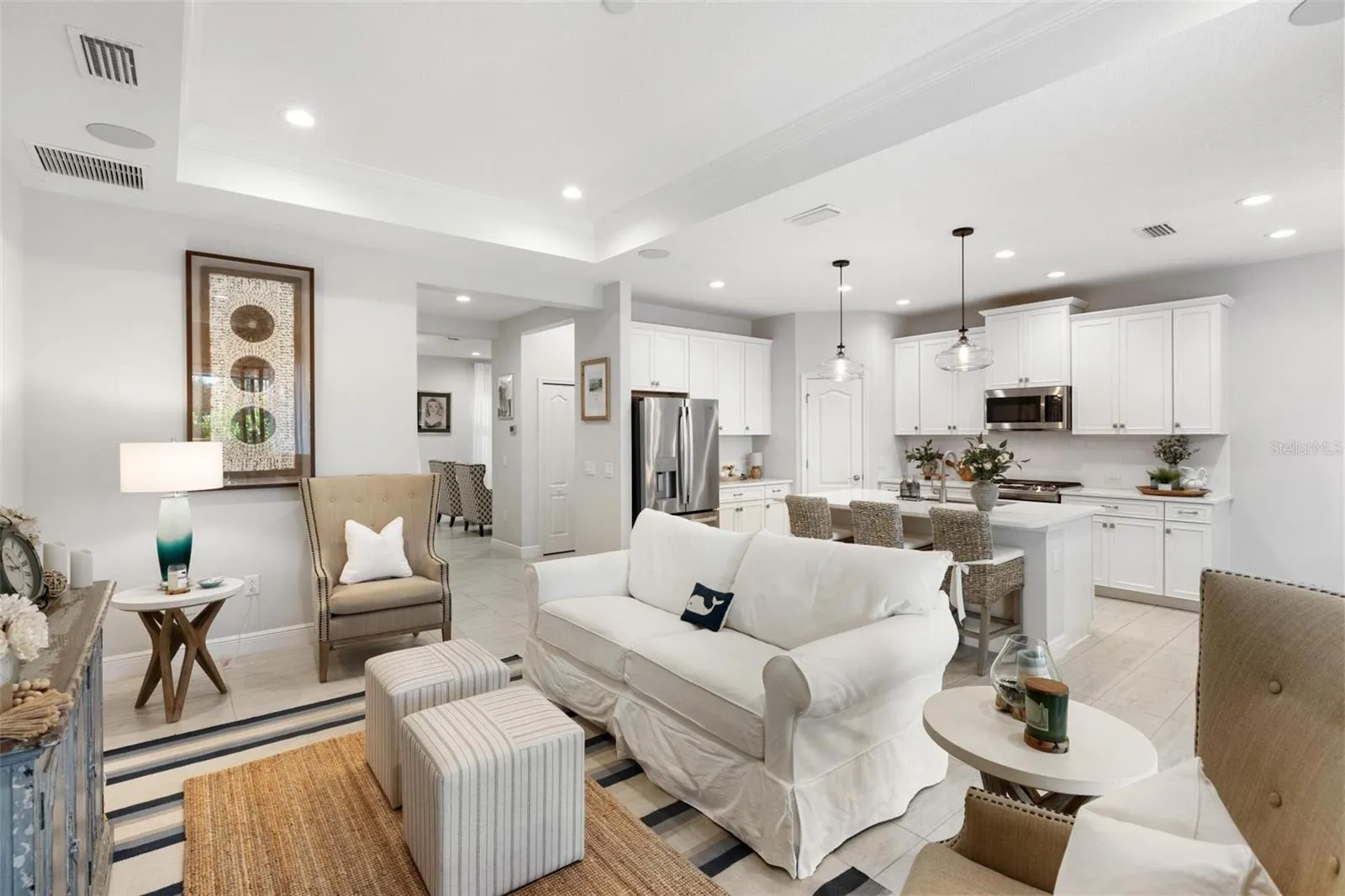 WELCOME TO 13145 STEINHATCHEE LOOP located in an X FLOOD ZONE with NO FLOOD INSURANCE REQUIRED. This 2020 BUILT home in GRAND PALM offers 3 BEDROOMS plus a flexible DEN and a 3 CAR GARAGE. Outside you will enjoy a HEATED POOL with WATERFALL FEATURE and an OUTDOOR KITCHEN with built in NATURAL GAS grill refrigerator GRANITE counters and cabinets. Inside the OPEN LAYOUT shines with SURROUND SOUND DESIGNER LIGHTING and QUARTZ COUNTERTOPS. Incredible location just minutes from WELLEN PARK downtown Venice and several local beaches.