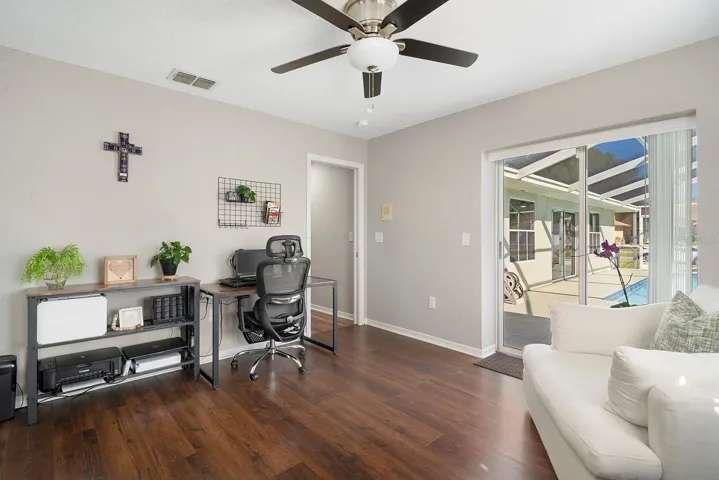 Welcome to this stunning, fully renovated 4-bedroom, 2.5-bathroom pool home, ready for you to move right in! The open-concept floor plan features a beautifully updated kitchen with Shaker cabinets, sleek granite countertops, and modern stainless steel appliances. The home boasts spacious living areas, including a great room, formal dining room, and breakfast nook. Freshly Painted inside and out, with tile and laminate flooring throughout, the home offers a contemporary and inviting atmosphere. The Owner suite is a true retreat, featuring an impressive walk-in closet with handmade crafted barn doors and a private bath with double sinks and an upgraded shower. The second bath also includes double sinks for added convenience. Skylights in the kitchen, master bath, and flex space flood the home with natural light, creating a warm, bright ambiance. Entertain in style with nearly 400 square feet of flexible space, complete with, cabinets counter top space and a sink — perfect for hosting guests. This space seamlessly flows into the screened-in pool area, offering the ideal setting for relaxation and outdoor living. Located in the desirable Estates at Seven Hills community, this home is just 5 miles from the Suncoast Parkway, providing easy access to Tampa. Enjoy the convenience of being within walking distance to shopping, dining, and recreation. Fences are allowed in this community, adding to the home’s appeal. Don’t miss out on this exceptional property — schedule your showing today! *** Roof Replacement done is 12/2020 and Ac Replacement and duct replacement done in 3/2023. Pool surfacing and Irrigation both done within the last 2-4 years.