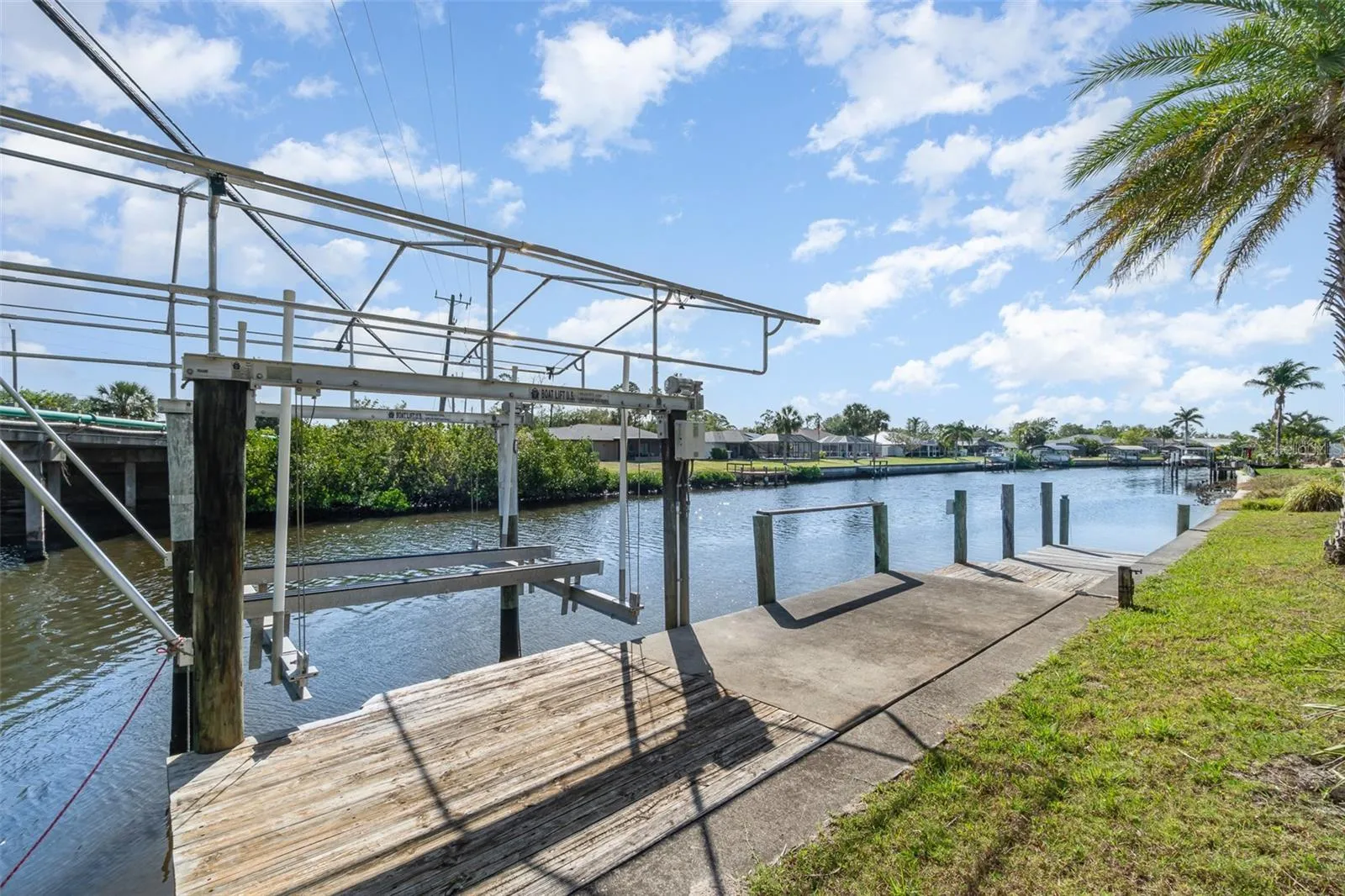 Perfect for boating enthusiasts, the property includes an 8,000 lb boat lift with electric and water hookups. Spend your days lounging by the heated pool, relaxing under the large screened lanai, and enjoying the serene water views surrounded by lush, mature landscaping.