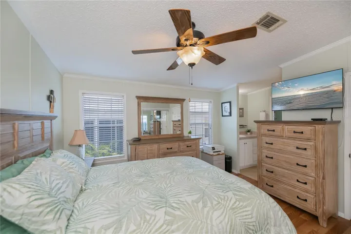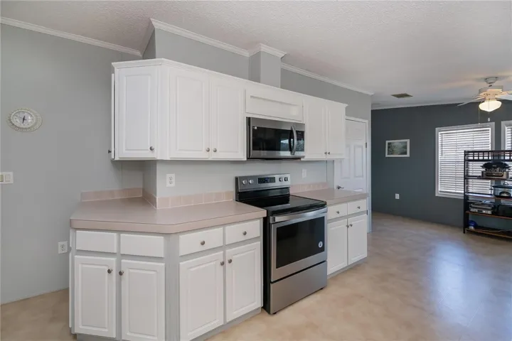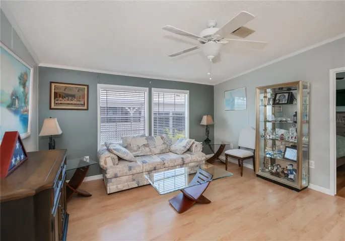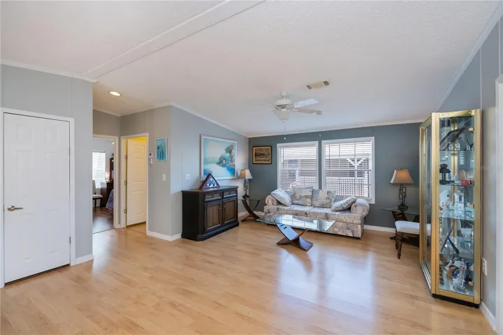 NEW PRICE! Seller wants to SELL! Don’t overlook this sparkling clean, split bedroom, open floor plan home. Incredible, eat-in kitchen with lots of cabinet & counter space, plus a pantry! All newer appliances, including washer & dryer. This Fleetwood double-wide home also features a den. Parking for two vehicles, plus a shed to accommodate a golf cart. This award-winning 55+ community is amazing and features amenities galore, including a golf course, four heated pools, hot tubs, fitness, woodworking, pickleballs courts and a full-service bar and restaurant! Live like you are on vacation every day! Make an appointment to see this stunning home today. Motivated Seller is aggressive to sell!