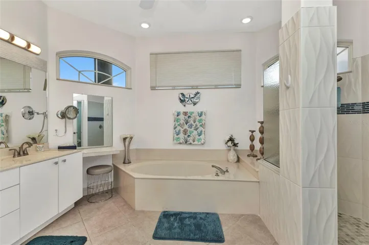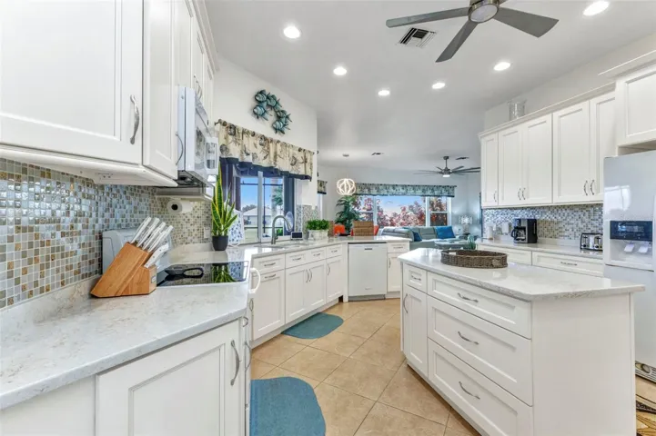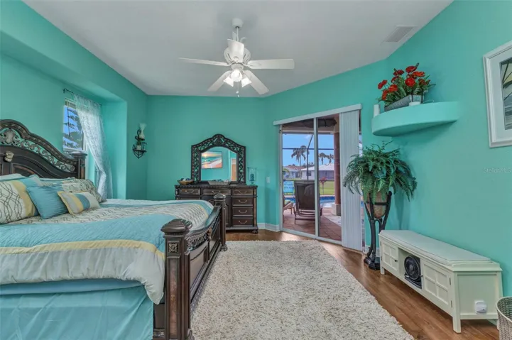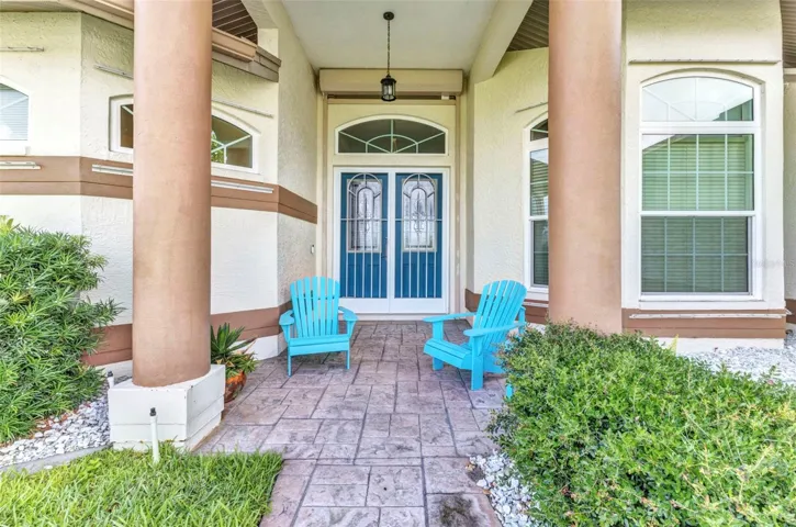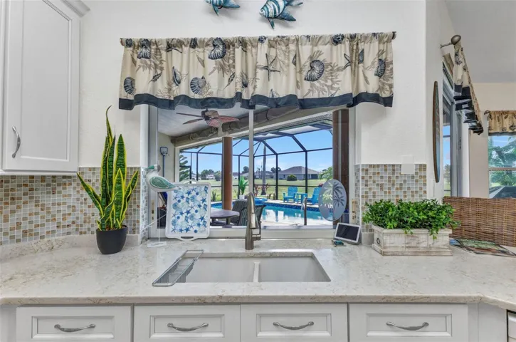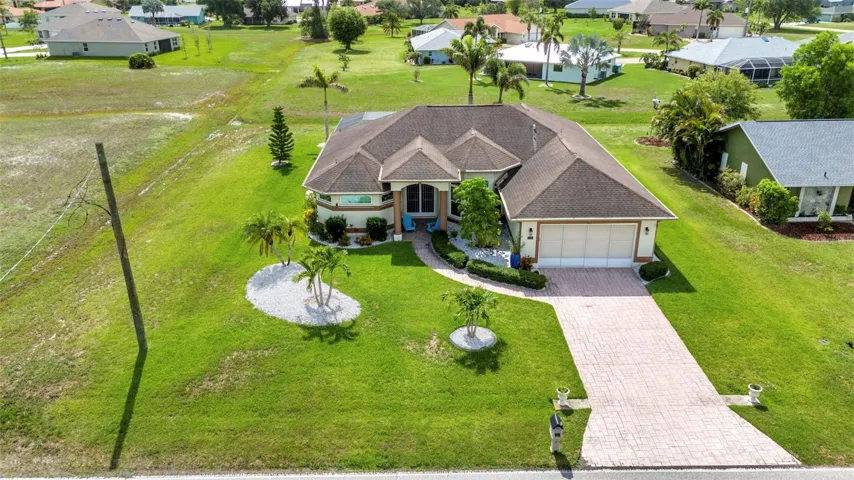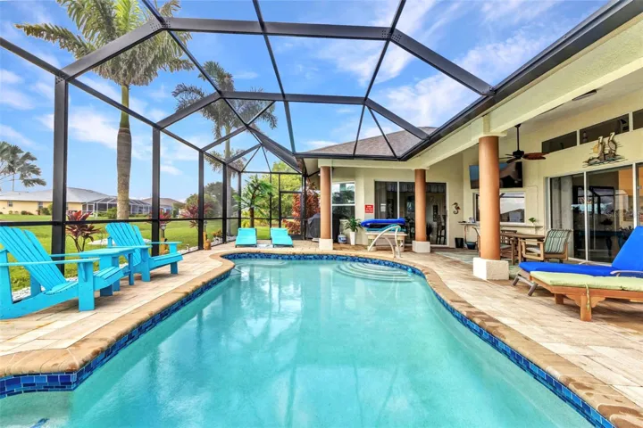 Back inside the home we have to mention more great updates and features including the elegant stamped driveway, sliding garage door screen, 13ft ceilings, wifi controlled thermostat, wifi controlled patio lights, ceiling fans in all rooms, additional water treatment system, full covered external security camera system, city water and sewer but well-fed irrigation to save on watering costs, professional landscaping including high end rocks and palm trees, hurricane windows and doors with additional hurricane shutters, 150mps impact Kevlar roll down screens in the lanai, exterior garage door opener, and flood lights around the home.