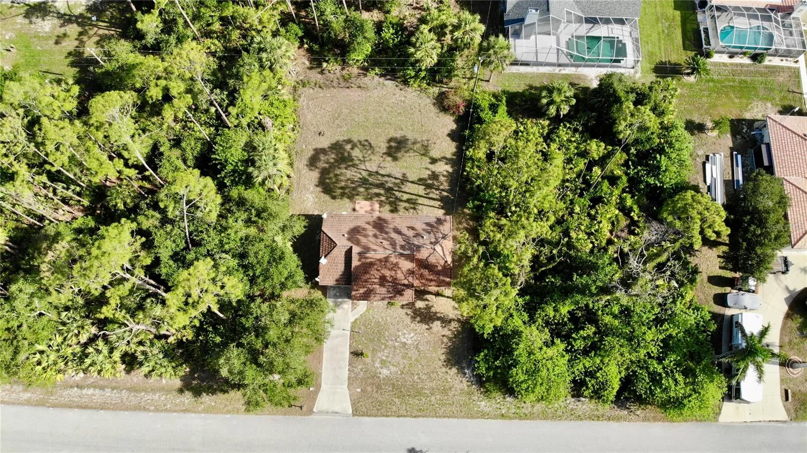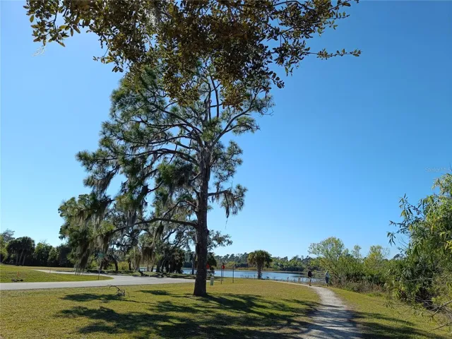 Tucked away in a peaceful, wooded setting, this charming 2-bedroom, 2-bath home with a one-car garage provides comfort, space, and quiet surroundings. Inside, you’ll find high vaulted ceilings in the main living area that create an open, airy feel. Both bedrooms include mirrored sliding closet doors, and the layout is functional and inviting. The spacious backyard provides plenty of room to relax, garden, or expand, with a rear concrete pad ready for a future patio or Florida room. A cozy front porch adds to the home’s charm, while accordion and panel shutters add extra peace of mind during storm season. Best of all, there’s no monthly water bill—making this home as practical as it is peaceful. Though it feels like a private retreat, you’re never far from everything you need. Just a short walk away is the beautiful Ollie’s Pond Park, perfect for birdwatching, nature walks, and quiet reflection. And with shopping, dining, entertainment, and major roadways nearby, you’ll enjoy the perfect balance of seclusion and convenience. This hidden gem is ready to welcome you home.