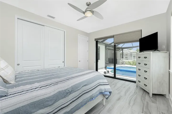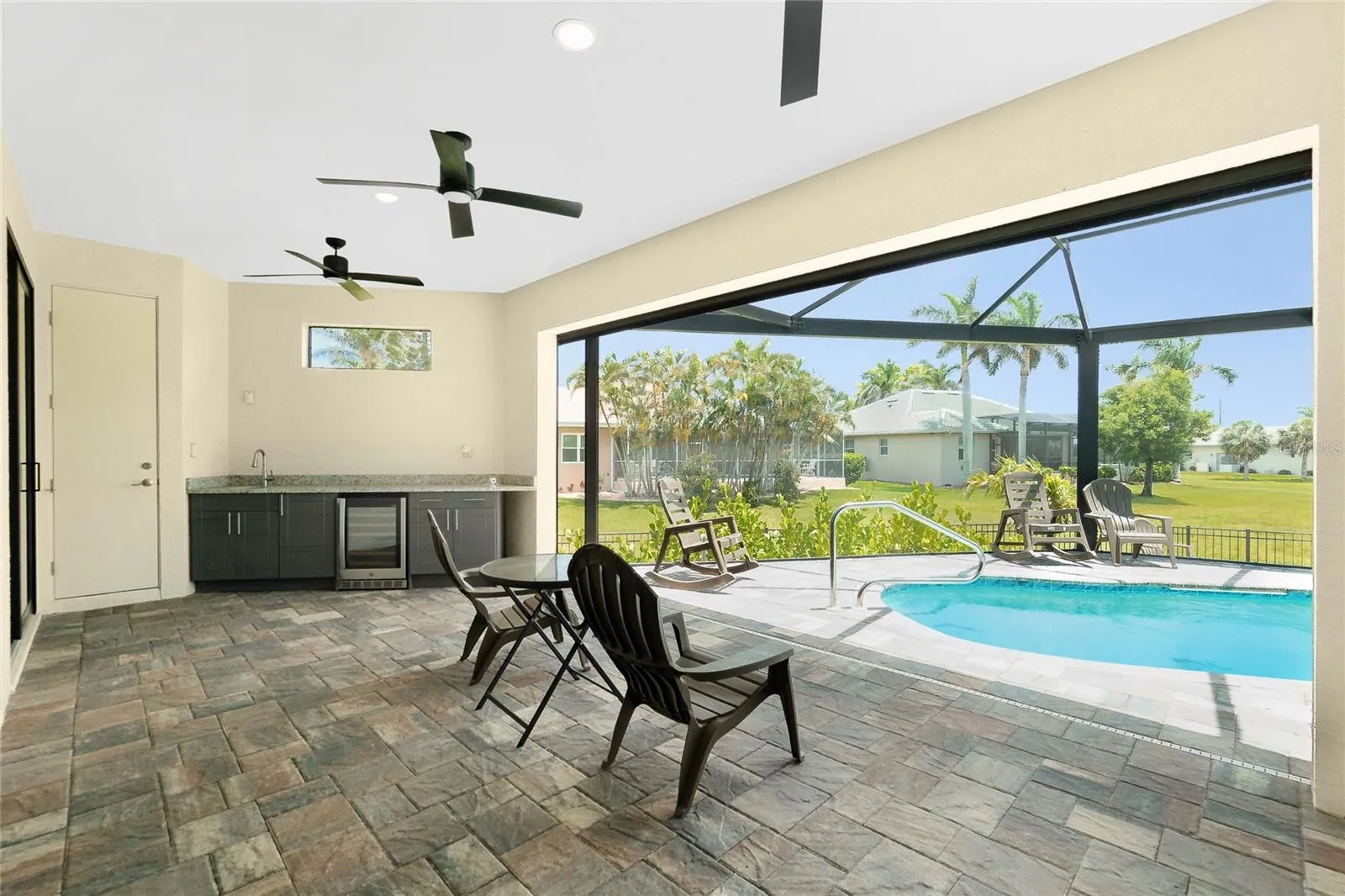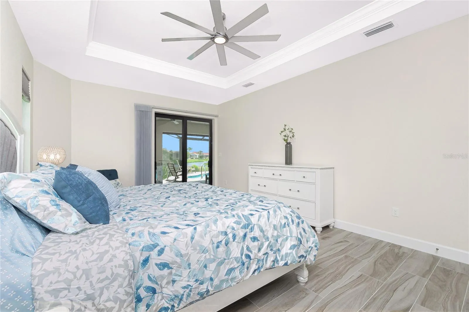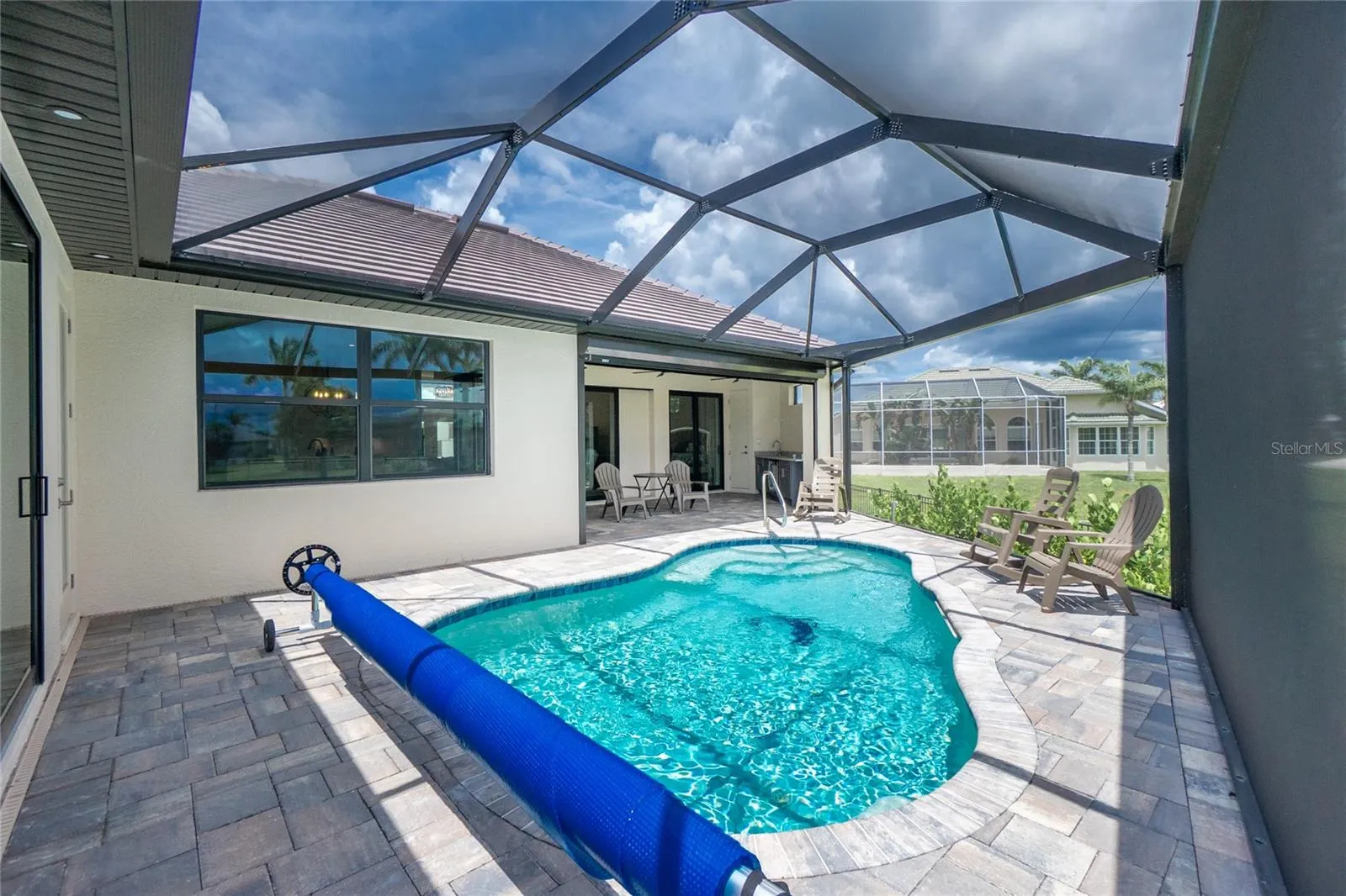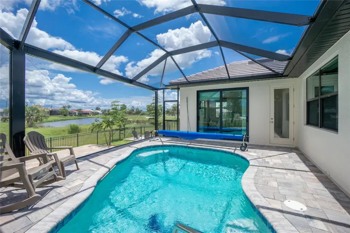 The outdoor living area is equally impressive, featuring a covered lanai overlooking the salt water-heated pool, with picture window screening. The outdoor kitchen is ideal for entertaining. Fenced in backyard with lush landscaping, an additional large paver patio and custom-built sandbox. Imagine starting your day with coffee overlooking the tranquil lake or unwinding at sunset.