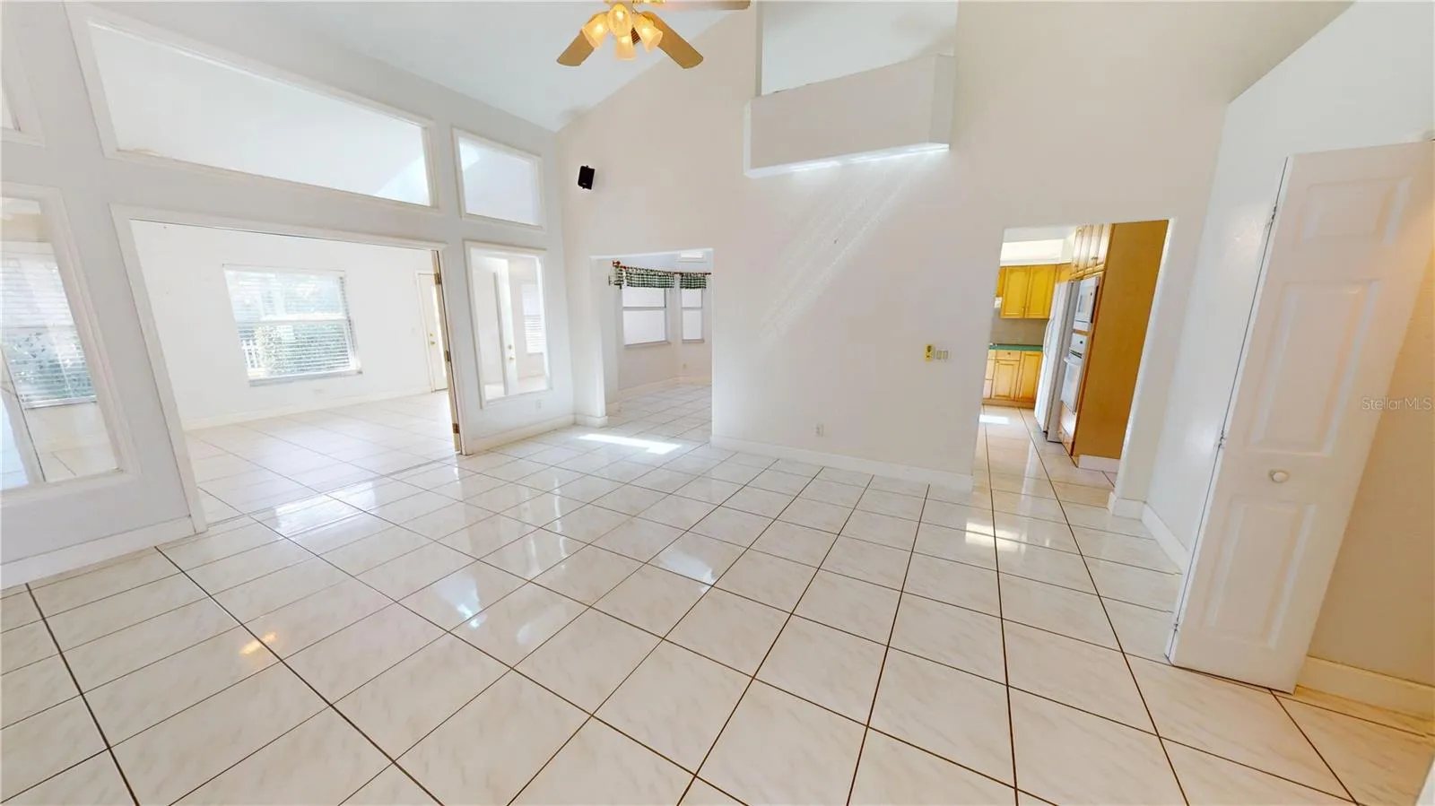 As you enter, you’re greeted by soaring ceilings, transom windows, skylights, and an abundance of natural light that fills every corner. The large living room flows seamlessly into a generous family room through classic French doors, creating an open, airy feel perfect for relaxing or hosting.