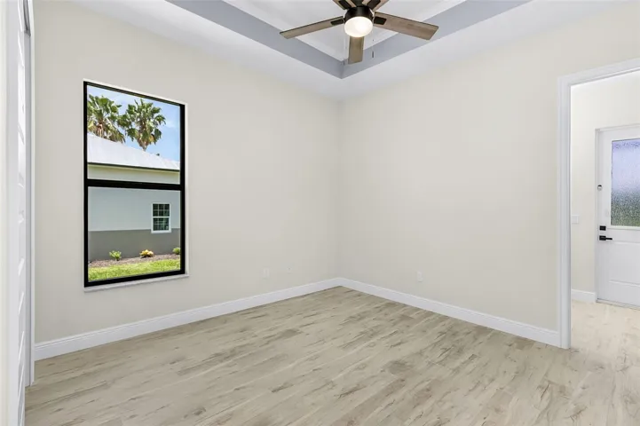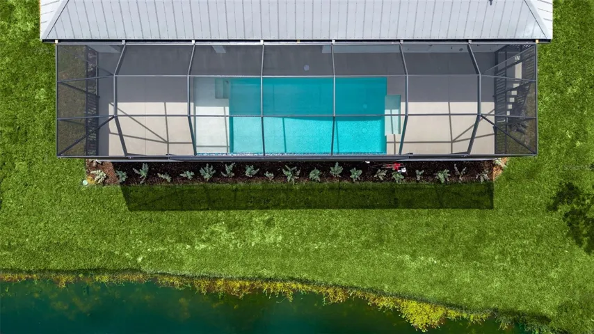Notable (exterior) features include: Privacy wall stubbed out with water & electric for future outdoor kitchen.. which also doubles for privacy just outside the master bedroom, fully automated Pool feature that gets programmed once Wi-Fi is brought to the home, “Picture frame” pool cage, custom wood-like vinyl planks on lanai ceiling, Brick paver driveway, Beautiful Rain Glass double entry doors, hand rail up the steps leading to front door as well as down from Pool lanai to rear of property, custom Bahama shutter above front entry, accent brick on front pillars, Epoxied garage floor, Metal Roof & Flat panel garage door!
