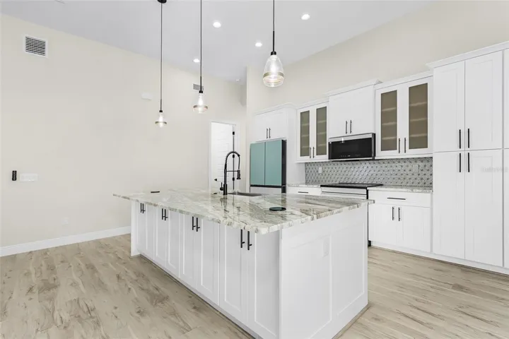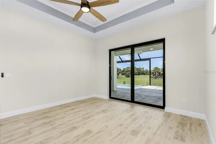 This quaint 3+Den/3 bath Pool Home has many “convenience” upgraded features that are easily noticed upon walking through the front doors. Some notable upgraded features (inside) include: Impact Glass throughout, high end Samsung Smart Appliance package, tastefully selected Lighting & Fan package, Black Jacuzzi Tub in Master bath- with hand held wand feature, huge walk in shower with large bench, Custom wood shelving (Uppers & Mid’s) in closets, Level 3 Granite, Luxury Vinyl plank flooring throughout, dove tail soft close cabinetry with additional cabinets for storage on back side of kitchen Island..as well as (2) pop up outlets/I-phone charging stations also located on kitchen Island.