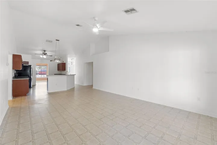 One or more photo(s) has been virtually staged. Privacy, space, and flexibility await in this 4-bedroom, 3-bath Spring Hill home with no rear neighbors and peaceful views of a natural watershed area. With over 2,450 sq ft of living space and a freshly painted interior, this home offers a versatile layout ideal for entertaining, multigenerational living, or anyone who needs room to spread out. Inside, you’ll find two spacious living areas—a formal living/dining combo up front, and an open kitchen and family room in back. The kitchen features ample cabinetry, generous counter space, a center island, and clear views into the vaulted family room. The private primary suite is a rare find with dual full bathrooms—one with a walk-in shower, the other with a garden tub—plus two walk-in closets and direct backyard access. The split-bedroom layout provides excellent separation for guests, home offices, or growing households. Out back, enjoy a large, fenced yard with mature trees and tranquil nature views. A screened-in lanai offers shaded outdoor living, and the footprint of an older deck and gazebo frame creates space ready for your own upgrades. Additional features include a two-car garage, indoor laundry, and excellent storage. The home retains mostly original finishes and is priced accordingly—giving buyers the chance to update without overpaying. A new roof will be installed at closing, with an acceptable offer, eliminating a major upfront cost. Set in a quiet, established neighborhood near shopping, dining, medical centers, and the Nature Coast’s outdoor attractions, this home offers value, space, and long-term potential.