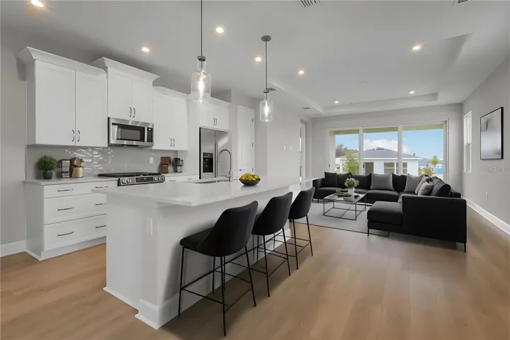 Welcome to the Ana Floor Plan. This beautifully designed 2-bedroom, 2-bath home, is complete with a Flex Room and a 2-Car Garage. This home boasts a charming front porch, enhancing its inviting curb appeal in a gated community. Step inside to discover the elegance of luxury vinyl plank flooring, paired with stunning Cambria quartz countertops and a kitchen island that makes entertaining a breeze. The kitchen boasts plenty of storage and blends in to the Great Room seamlessly. The open-concept layout is complemented by tray ceilings, offering an elegant and spacious feel. A covered lanai makes for great outdoor living all year round. For added convenience, enjoy a natural gas kitchen, an exterior tankless water heater, and a gas connection for grilling, perfect for outdoor gatherings. DISCLAIMER: Prices, financing, promotion, and offers subject to change without notice. Offers valid on new sales only. See Community Home Guides for details. Promotions cannot be combined with any other offer. All uploaded photos are stock photos of this floor plan. Actual home may differ from photos.