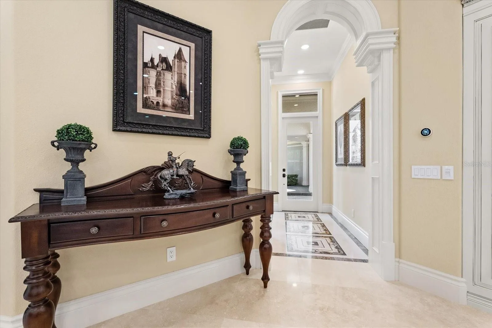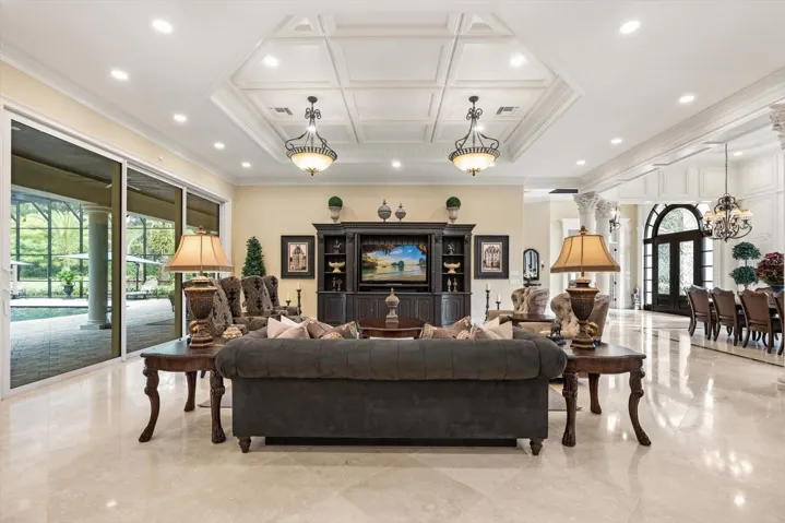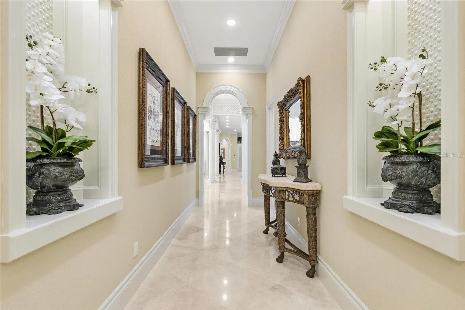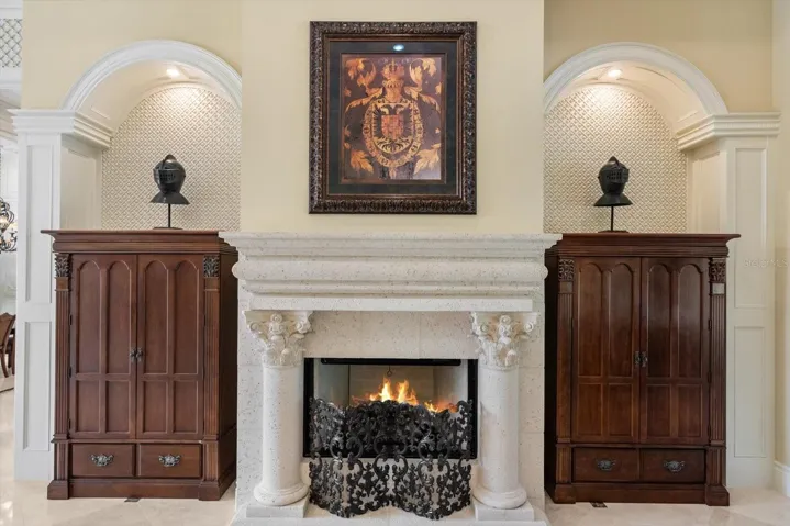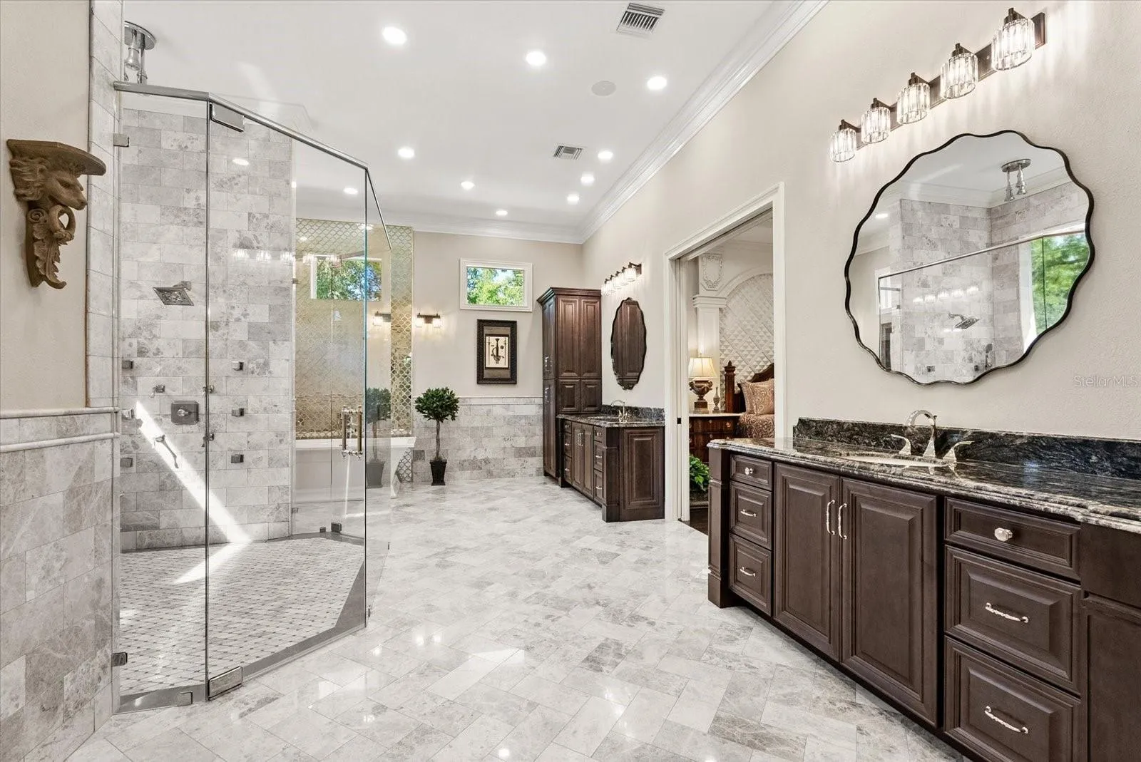 Welcome to an extraordinary estate blending timeless elegance with modern sophistication. Built by renowned luxury home builder Dave Brewer, this recently fully remodeled, executive residence showcases exceptional craftsmanship & offers an elevated living experience. Nestled within the 24-hour guard-gated Sweetwater Club, the property spans nearly three acres of meticulously landscaped grounds, creating a serene private retreat. A sweeping driveway welcomes you, framed by new custom landscaping. Lush grounds feature vibrant plantings, dramatic lighting, & thoughtfully designed outdoor living areas, setting the tone for a world-class lifestyle. Through grand arched double doors, the interior reveals a stunning open floor plan filled with natural light. Soaring ceilings & expansive windows highlight the home’s architectural beauty. Travertine flooring with intricate inlays flows throughout the main living spaces, while rich hardwood floors add warmth & elegance to the bedrooms. The gourmet kitchen is designed for a culinary enthusiast & outfitted with top-tier appliances, including dual ovens, a built-in refrigerator & freezer, and a second oven in the hidden butler’s pantry. Double-stacked granite countertops and a custom stone range hood elevate the space, while the expansive butler’s pantry provides ample storage & prep areas for effortless entertaining. Each bathroom serves as a personal sanctuary. Luxurious finishes, double-stacked granite countertops, custom vanities, & full-wall stone-tiled showers with artistic inlays create spa-like experiences. The owner’s bath features a soaking tub & shower with multiple jets & a rain shower designed for relaxation. While another bathroom includes a steam room, sauna, & rain shower, offering a true wellness experience at home. Ideal for entertaining, the outdoor living space features a newly remodeled saltwater pool & hot tub finished with Italian tile & exposed aggregate, both equipped with advanced automated controls for effortless operation. A custom stone fireplace adds warmth & ambiance. The outdoor kitchen is fully equipped with stainless steel cabinetry, a new grill, side burner, sink, refrigerator, freezer, & television—perfect for hosting gatherings. Built-in Bose speakers throughout create the perfect atmosphere. Every element reflects expert craftsmanship, from detailed moldings & tray ceilings to beautifully textured walls. Laundry rooms combine style & function, including a steam unit & additional appliances to support outdoor entertaining. Modern amenities include three new gas water heaters, energy-efficient LED recessed lighting, & a high-end security system with 14 surveillance cameras. Exterior lighting by Fine Art Handcrafted Lighting highlights the home’s beauty day & night. The home offers exceptional flexibility with two private offices, a fitness room, a cozy media room, & spacious storage above the garage. These spaces can adapt to your needs as additional bedrooms, game rooms, or a home theater. Sweetwater Club offers private tennis & pickleball courts, a basketball court, & access to Sweetwater Beach on Lake Brantley. Enjoy boating, water skiing, fishing, sailing, & kayaking. This is a rare opportunity to own a property embodying luxury, privacy, & comfort at the highest level.