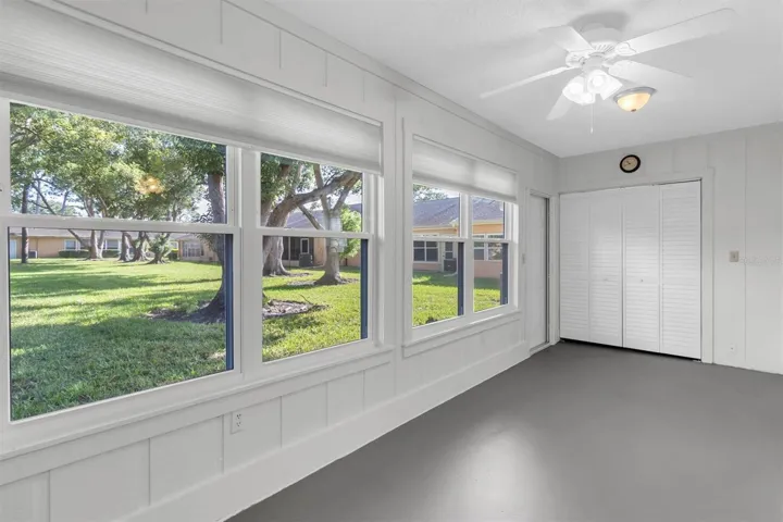 GORGEOUSLY UPDATED, THIS 2/2/C VILLA IS IDEALLY LOCATED IN A POPULAR OVER 55 COMMUNITY IN THE TRINITY AREA! THE NEW WINDOWS AND END LOCATION ALLOWS THIS BEAUTIFUL SPACE TO BE FLOODED WITH NATURAL LIGHT & STAY ENERGY EFFICIENT! ENJOY A LARGE VERSTILE GREAT ROOM HIGHLIGHTED WITH A DRY BAR GREAT WHEN ENTERTAINING. THE VERSATILE FAMILY ROOM SPANS 19 FEET ACROSS THE BACK OF THIS HOME WITH A TREED VIEW! THE KITCHEN IS LINED WITH NEW RAISED PANEL CABINETS TOPPED BY GLEAMING GRANITE AND MATCHING UPDATED APPLIANCES. THE HANDY PANTRY HAS A UNIQUE SLIDING BARN DOOR CLOSURE FOR SOME EXTRA STYLE!! BOTH BEDROOMS ARE A GENEROUS SIZE AND THE PRIMARY HAS EVERYONE’S FAVORITE, DUAL WALK IN CLOSETS, DUAL SINKS & STEP IN SHOWER! THE 2ND BEDROOM ALSO HAS A BIG WALK IN CLOSET AND IS CONVENIENTLY ADJACENT TO THE UPDATED GUEST BATH. LOVE THE LAUNDRY CLOSET! THE LARGE BREEZY FRONT PORCH FEATURES RETRACTABLE SCREENS! YOU ARE JUST A SHORT STROLL TO THE ACTIVE CLUBHOUSE WHERE YOU WILL FIND MORE ACTIVITES THAN YOU CAN KEEP UP WITH! HEATED POOL & SPA, TENNIS, PICKLEBALL, BOCCE, POOL & BILLIARD ROOM, EXERCISE CLASSES, CARD ROOM, LIBRARY, THE LIST IS ENDLESS! THROW IN LOW FEES TO MAKE THIS IS A REAL DEAL! ADD IN ALL THE AMENITIES THAT THE TRINITY OFFERS AND YOU HAVE A STEAL! HURRY TO THIS ONE! HESITATE….AND YOU’LL BE TOO LATE!