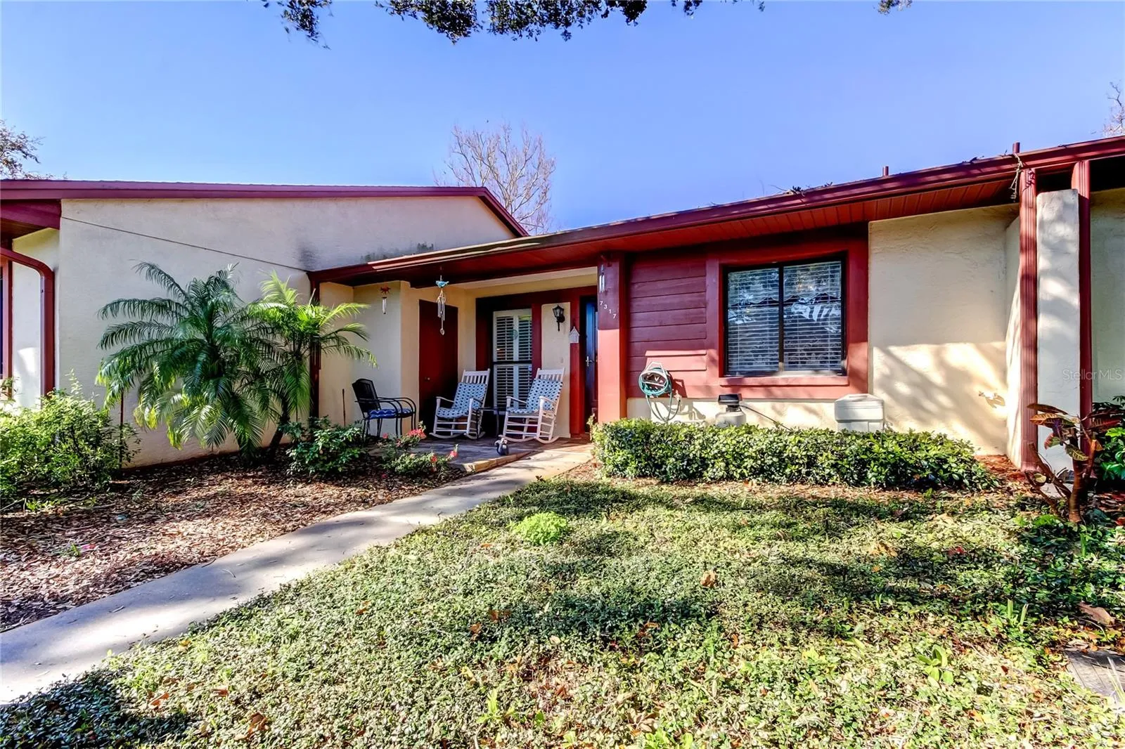 SNOWBIRDS OR DOWNSIZING? THIS PICTURE PERFECT, MOVE-IN READY CONDO IS PRICED TO SELL. FRONT PORCH OVERLOOKING A PRETTY POND, WELCOMES YOU INTO A BRIGHT AND OPEN LIVING AREA. LAMINATE AND CERAMIC FLOORING THRU OUT WITH NO CARPET. ROOF 2015(COVERED BY ASSOCIATION), AC 2021 AND WATER HEATER 2021. ENCLOSED LANAI WITH HEAT AND AIR AND INDOOR LAUNDRY. PRIMARY BEDROOM W/ENSUITE BATH AND WALK-IN CLOSET. LARGE HALLWAY PANTRY/STORAGE CLOSET, NO REAR NEIGHBORS. 1 CAR CARPORT AND GUEST PARKING, COMMUNITY POOL AND ONE CAT or ONE DOG ALLOWED. FURNISHINGS ARE NEGOTIABLE. THIS IS A MUST SEE!