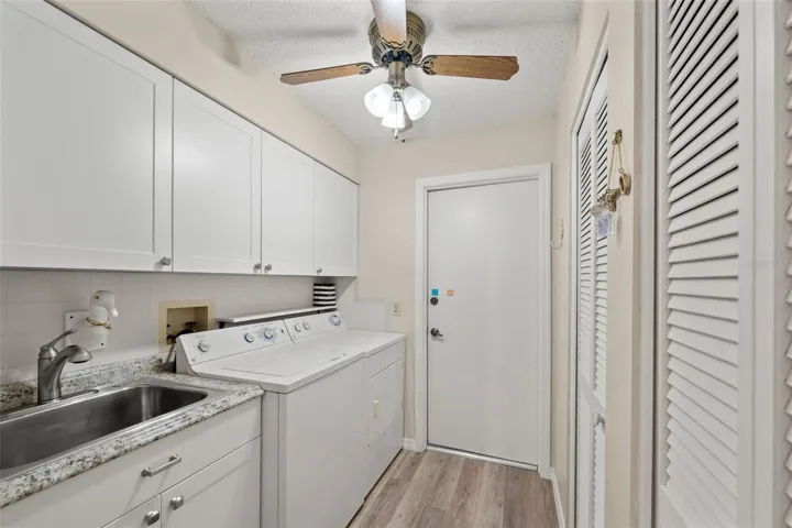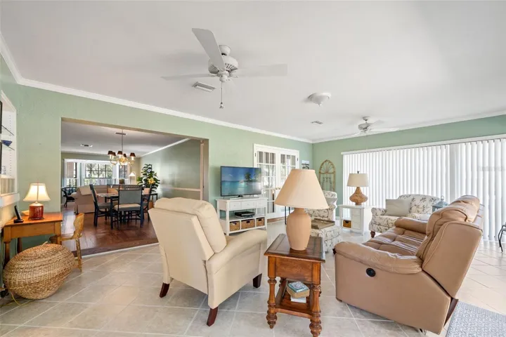Beautiful Home in Award-Winning Timber Pines This charming, beautifully maintained home offers exceptional curb appeal and an inviting front porch. Step inside to a tastefully appointed living and dining area with crown molding and plantation shutters throughout. The front window nook features a built-in window seat with extra storage, and the home showcases gorgeous vinyl plank flooring. The spacious kitchen provides plentiful cabinets and counter space, opening to a bright breakfast nook overlooking the landscaped backyard. The kitchen flows into a large family room and enclosed lanai—perfect for relaxing or entertaining. Step outside to the brick-paver patio with a sunken hot tub, set in a private, peaceful setting. The primary suite features two walk-in closets and a newly remodeled bath with walk-in shower and dual sinks. The comfortable guest bedroom offers an expansive closet, and the guest bath includes a new vanity and tub/shower combination. The laundry room with storage closets leads to a two-car garage with built-in cabinetry. NEW ROOF 2024!!!! Extras include: Golf cart and furnishings—sold turnkey, with some items excluded (see list). Reside in one of Florida’s premier active adult communities with access to four golf courses, tennis and pickleball courts, clubhouse, fitness center, pools, full-service restaurant, Dog park, 24 hour security, gated and guarded, Performing Arts Center, Resident Activity Center, 2 Geothermal Pools, Billiards Center, Wood Shop, Arts and Crafts room, and over 100 social clubs,so many Activities!! Spectrum Cable TV, 2 Boxes, and highest speed internet included in HOA. ?? Don’t miss your chance to make this home your own in Timber Pines—where comfort meets community. Schedule your private tour today!