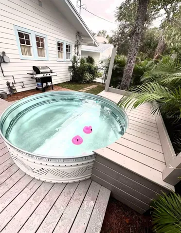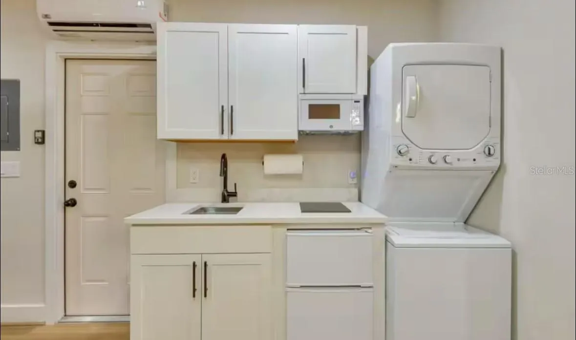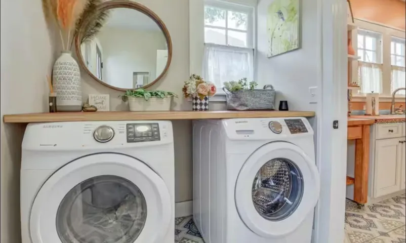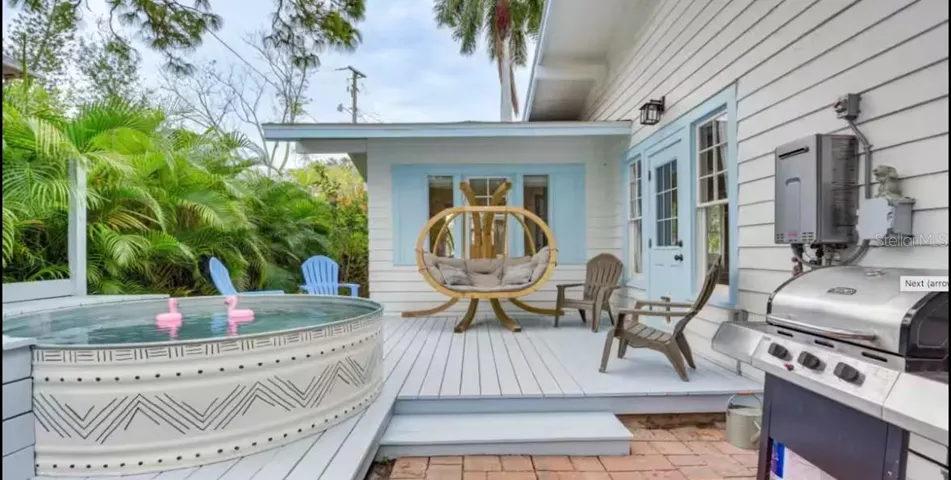 Absolutely stunning 1925 home in Historic Bradenton with Guest House/Efficiency located steps from Downtown, walking distance to shopping, dining, Manatee River & public transportation, and only 15 minutes from gorgeous Gulf beaches, including famous Ana Maria Island! Outstanding location with several lucrative short-term rentals here. Located in an Opportunity Zone for added tax savings and investment potential. Stroll up the red brick path to the quaint front porch of this lovingly restored and updated home. Upon entering the front door, you’ll immediately notice the restored wood plank flooring in the large great room with cozy fireplace and loads of natural light! The ceilings were raised adding to the roomy feel of this open, well-thought out floorplan. To your right, the third bedroom features French doors and looks out over the front of the home, making a great work-from-home-office. Beyond the great room is the formal dining room and beyond that, the renovated white kitchen with solid wood cabinets, 2019 SS appliances, including 5 burner gas stove and spotless butcher block counters. Beyond the kitchen, is the laundry room, complete with washer & dryer that doubles as a mud room and leads to the back door. The hall bathroom features a gorgeous claw-foot tub with shower head and linen closet. The bedrooms are designed in a 3-way split with the office/bedroom in the front, the second bedroom in the middle of the home, off of the dining room and the primary bedroom in the back of the house. The primary bedroom boasts an en suite bathroom with stand-up shower and two walk in closets. Walk in closet in the second bedroom, as well. Detached garage in back has been converted to an efficiency with kitchenette, full bathroom with stand-up shower and walk-in closet, adding an additional sq ft of living space So many great possibilities for this space – in-law suite, young adult apartment, potential income-producing. However, there is still a garage door and opener, so you could convert back if that’s your preference. Adjacent driveway has plenty of room to park two large vehicles, a bit more space toward the alley to park one more, and the other side of the garage has ample room for boat or RV parking. The side yard is fully fenced for your furry friends, and the deck is roomy enough for grilling, lounging and entertaining. Recent upgrades include newer kitchen and bathrooms, restored windows, updated plumbing & electric, updated electrical panel, new roof, A/C and ductwork (2018), sprinkler system (2021), new driveway (2021), guest house remodel (2020).