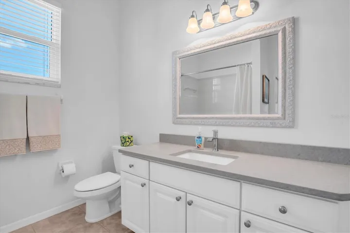 bath on one side of the home. The primary suite offers a peaceful retreat with large