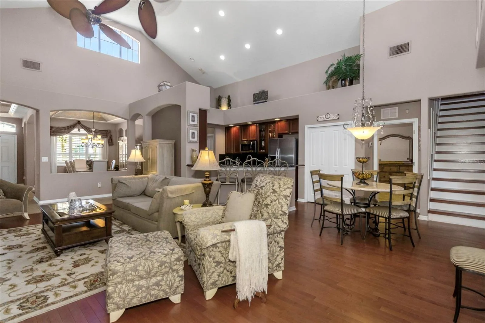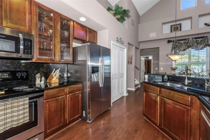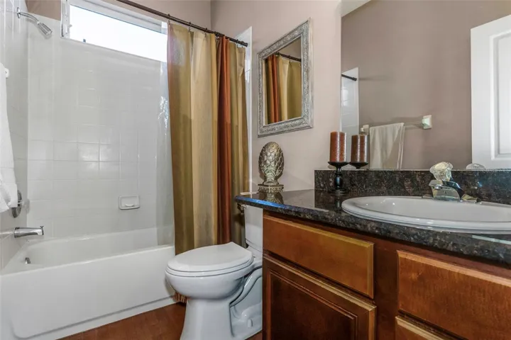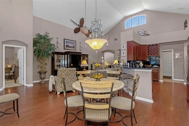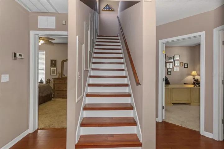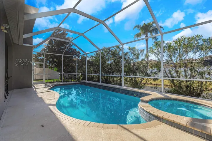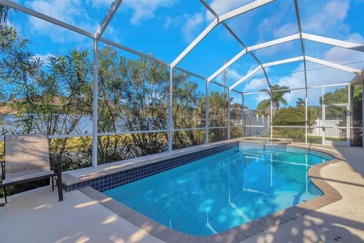 Welcome home to this beautiful Trinity pool home. This spacious residence features four bedrooms plus a den/office (or potential fifth bedroom), three bathrooms, and a two-car garage with an excellent layout. Enjoy a formal living room and formal dining room, along with a beautiful open kitchen offering granite countertops, wood cabinetry, stainless appliances, and a cozy eat-in area. The kitchen overlooks the family room, making it ideal for entertaining. Upstairs, the large bonus room is perfect for a media room, man cave, kids’ playroom, or could even serve as a fifth bedroom. The home showcases stunning engineered hardwood flooring, plantation shutters, crown molding, and vaulted ceilings for an elegant touch throughout. The primary suite features dual sinks with a vanity area, a separate garden tub, and a walk-in shower-with direct access to the covered lanai and pool area. The screen-enclosed pool and spa have a child fence for peace of mind. Located near top-rated schools, medical facilities, shopping, restaurants, bars, and golfing- with easy access to Tampa via the Suncoast Expressway. No flood zone and not affected by past storms. Low HOA and no CDD fees make this home even more desirable. New roof will be done prior to closing. This is truly must-see!
