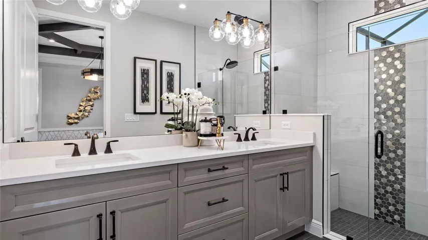 Step outside to the spacious covered lanai, perfect for enjoying Florida’s renowned indoor-outdoor lifestyle, hosting memorable gatherings, or simply unwinding in your private retreat. The secluded Owner’s Suite provides a true sanctuary, featuring a generous vanity area, a luxurious frameless glass shower, and an oversized walk-in closet for exceptional storage and organization.