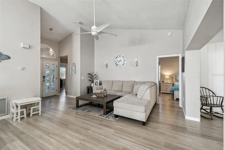 FULLY-REMODELED home, perfectly situated on a quiet CUL-DE-SAC in the sought-after Wood View at Meadow Oaks Golf Community! This beautifully updated residence features an OPEN FLOOR PLAN with soaring ceilings, recessed lighting, and matching LUXURY FLOORING throughout.