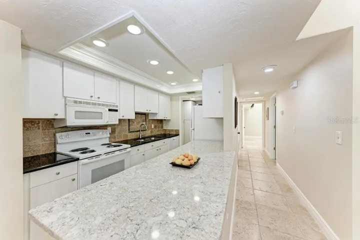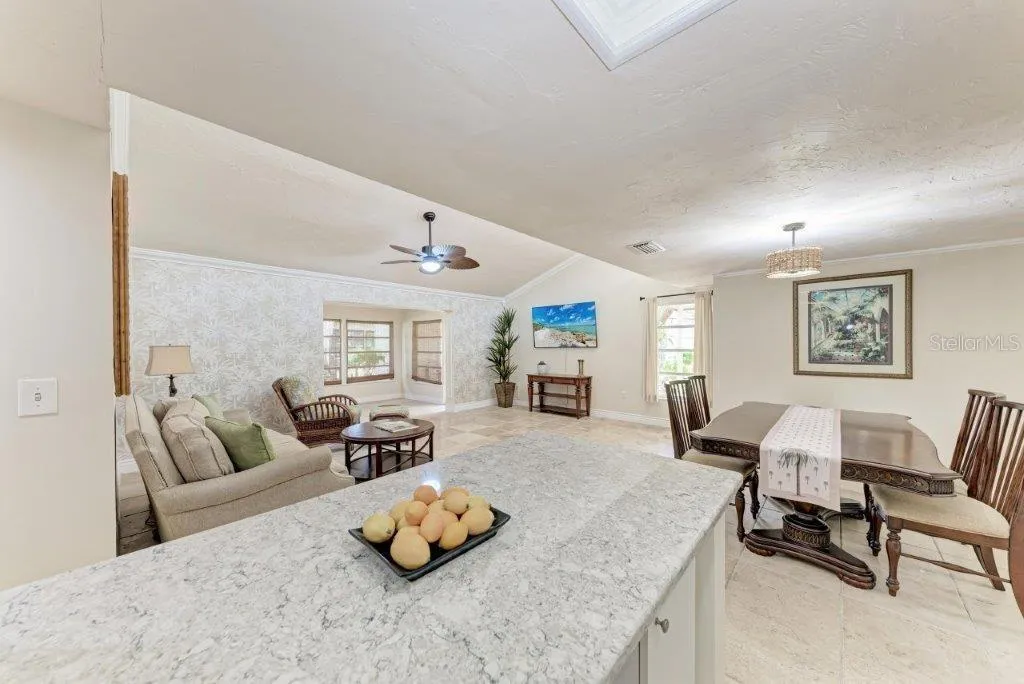 Back on the market, buyers job position changed. Upgrades galore in this stunning 2 bedroom 2 bath villa. Convieniently located near the pool and tennis / pickleball courts in the desirable neighborhood of Woodside Village East. Beautiful Travertine Marble floors throughout the unit. New HVAC unit (June 2025), updated bathrooms with generous use of stone. The spacious living room has vaulted ceilings, crown moulding and flows into the charming Florida room with an abundance of natural light. Updated Kitchen is completely open to the living space with granite and quartz counter tops with new dishwasher and refrigerator. Master bedroom was modified to close off the bathroom and create an alcove perfect for use as an office workspace. Walk in closet and sliders open to private patio. Spacious second bedroom with large walk in closet. Beautiful front garden with tiled area, great for outdoor entertaining. Dont miss this one, easy to show.