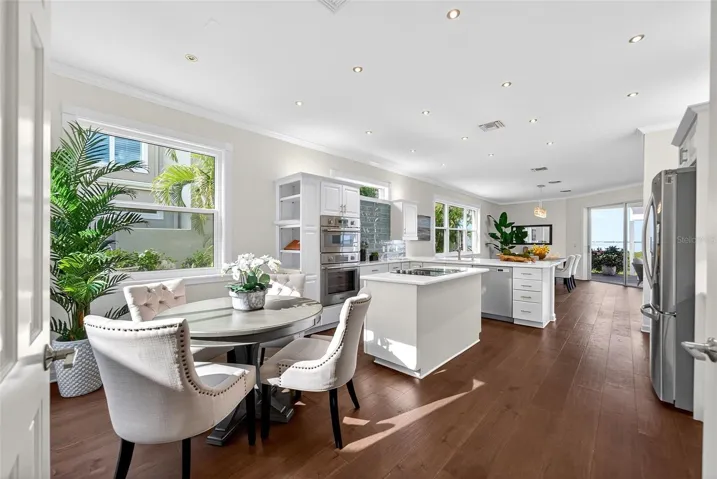 Discover an exceptional opportunity to live behind the gates of the Longboat Key Club in the highly coveted Corey’s Landing neighborhood — one of the island’s premier bayfront addresses. Set within an intimate, established enclave of just 61 single-family homes and villas, this free-standing residence welcomes you through double doors into a showplace of light, style, and space. Step outside to the expansive screened lanai — an inviting oasis for relaxing or entertaining by the pool while taking in mesmerizing bay views and the twinkling lights of downtown Sarasota. Enjoy immediate bay access with the private boat dock and lift. Inside, soaring transom windows, walls of glass, and rich wood floors enhance the open great-room design — a perfect setting for entertaining around the elegant fireplace. The updated kitchen connects seamlessly to the dining and living areas, showcasing sleek white cabinetry, a striking tile backsplash, solid-surface countertops, stainless steel appliances, and a generous breakfast bar ideal for casual gatherings. The first-floor primary suite is a private retreat with walls of glass, a cozy sitting area, custom built-ins, dual closets, and a luxurious remodeled bath featuring dual vanities, a large walk-in shower, and a separate water closet. Also on the main level are a private guest suite, second bedroom, full bathroom, a study/den, and a convenient outdoor dog space. Upstairs, a versatile loft provides the flexibility for a gym, library, or additional guest accommodations. The attached two-car garage offers ample storage, while Corey’s Landing residents enjoy access to a community pool, spa, Har-Tru tennis courts, and the private Bay Isles Beach Club. Ideally located near world-class shopping, dining, and the renowned St. Armands Circle, this residence captures the essence of the Longboat Key lifestyle — elegant, relaxed, and effortlessly connected to both land and sea.