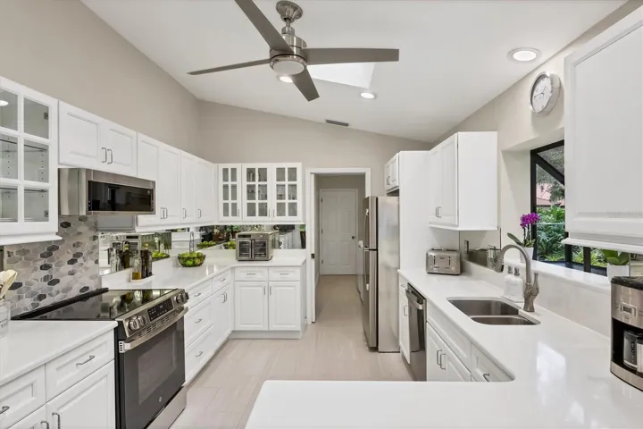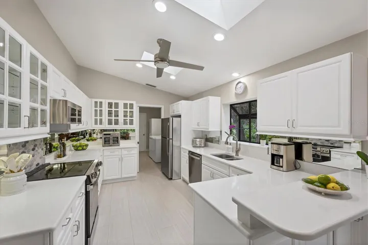 Priced to sell. Welcome to Bent Tree, Sarasota’s premier gated community, ideally located near I75 with easy access to Siesta Key’s beaches and vibrant downtown Sarasota with plenty of shopping and world-class dining nearby. This completely renovated 3 bedroom/2 Bath, 2018 square foot single floor villa, surrounded by mature oak trees and lush landscaping, sets itself apart. For starters, this is a block home, not a wood-framed home as price compared with other sections of Hammocks. It also has one of the best locations in Hammocks IV with stunning garden views, more privacy and only a few steps from the community’s heated pool. The nearby Bent Tree Golf Club provides optional membership for golf enthusiasts. This tastefully updated villa with vaulted ceilings and skylights has gorgeous Brazilian teak hardwood floors and Italian porcelain tile. The bright and modern kitchen offers lots of storage space with soft close cabinets, beautiful Quartz countertops and brand new sleek stainless steel appliances. The primary bedroom has two custom built walk-in closets. There is also a huge walk-in shower and a large tub for relaxation. The guest suite area can be completely closed off for privacy, and offers an updated guest bath with custom vanity, stone top, designer fixtures and glass shower enclosure. The interior finished laundry room features a sink, as well as extra cabinet storage. Other features & updates include a new hot water heater, new A/C system, epoxy garage floor, all new LED lighting, new ceiling fans, extended screened lanai and so much more. The grounds are meticulously maintained by the association, perfect for that maintenance free lifestyle. Exterior painting, pest control, basic cable, roof cleaning and replacement are all included in HOA fee as well. Don’t miss out on this fantastic opportunity to own a beautiful move-in-ready villa. See link for virtual tour under facts & features on Zillow or paste this link into your browser bar and video will play. https://cmsphotography.hd.pics/7254-Oak-Moss-Dr
