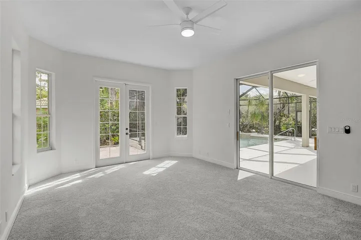**IMPRESSIVE POOL/SPA HOME on a Desirable Corner Lot with Partial Water View** Custom-built by John Cannon and situated on an interior Cul De Sac in popular North Creek Estates, this 3-BED + Office/Den, 3 FULL BATH, 2-Car Garage residence affords wonderful privacy and features 2622sf of heated living area plus a spacious screened lanai with Heated Pool/Spa and ample covered seating area, for the utmost enjoyment of the Florida lifestyle. This Light and Bright, Open Floorplan entails premium features including crown moldings, tray ceilings, custom built-ins, gas fireplace, expansive kitchen with large island, hardwood cabinets, stainless steel appliances, etc. The spacious Owners’ Suite includes a Large, Walk-in Closet, and primary bath with dual vanities, soaking tub and custom-tiled shower. Recent Updated including NEW ROOF (2025), Appliances, Freshly Painted Interior, Carpet & Wood Flooring, etc. LOW HOA Fees. Residents enjoy a Prime Location with easy access to US41/Tamiami Trail — close to area beaches including #1 rated Siesta Beach, shopping, dining, cultural attractions, and the highly rated Pine View School. **Please Enjoy Viewing the 3D VIRTUAL TOUR**