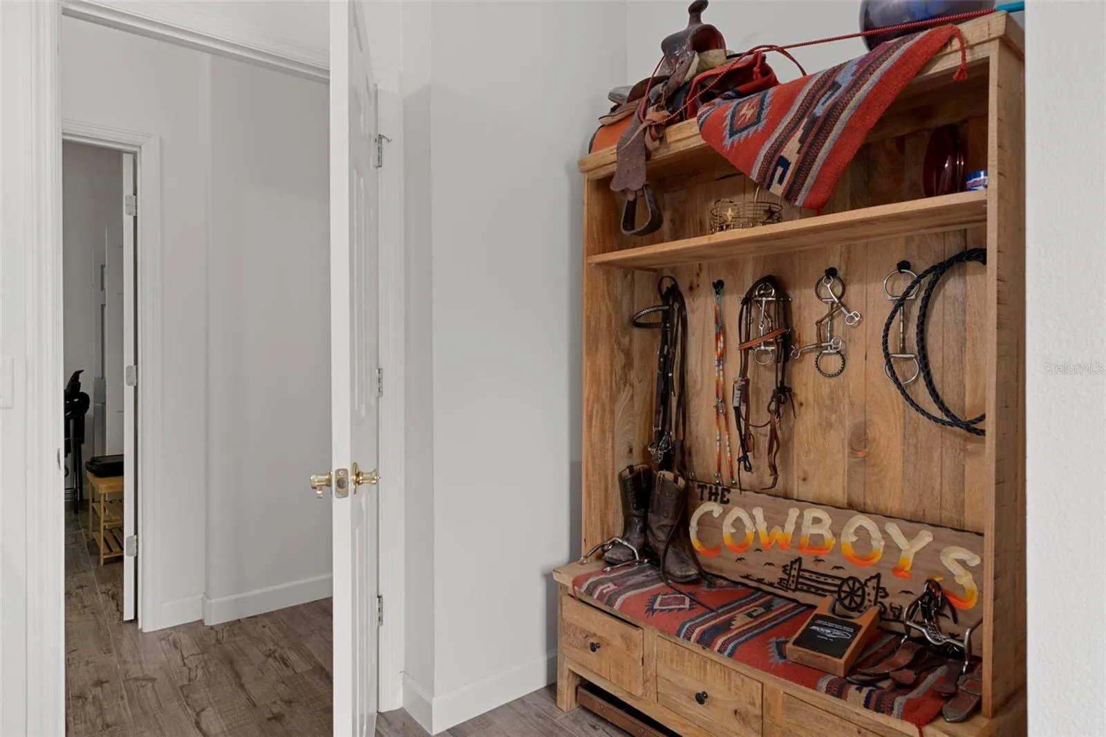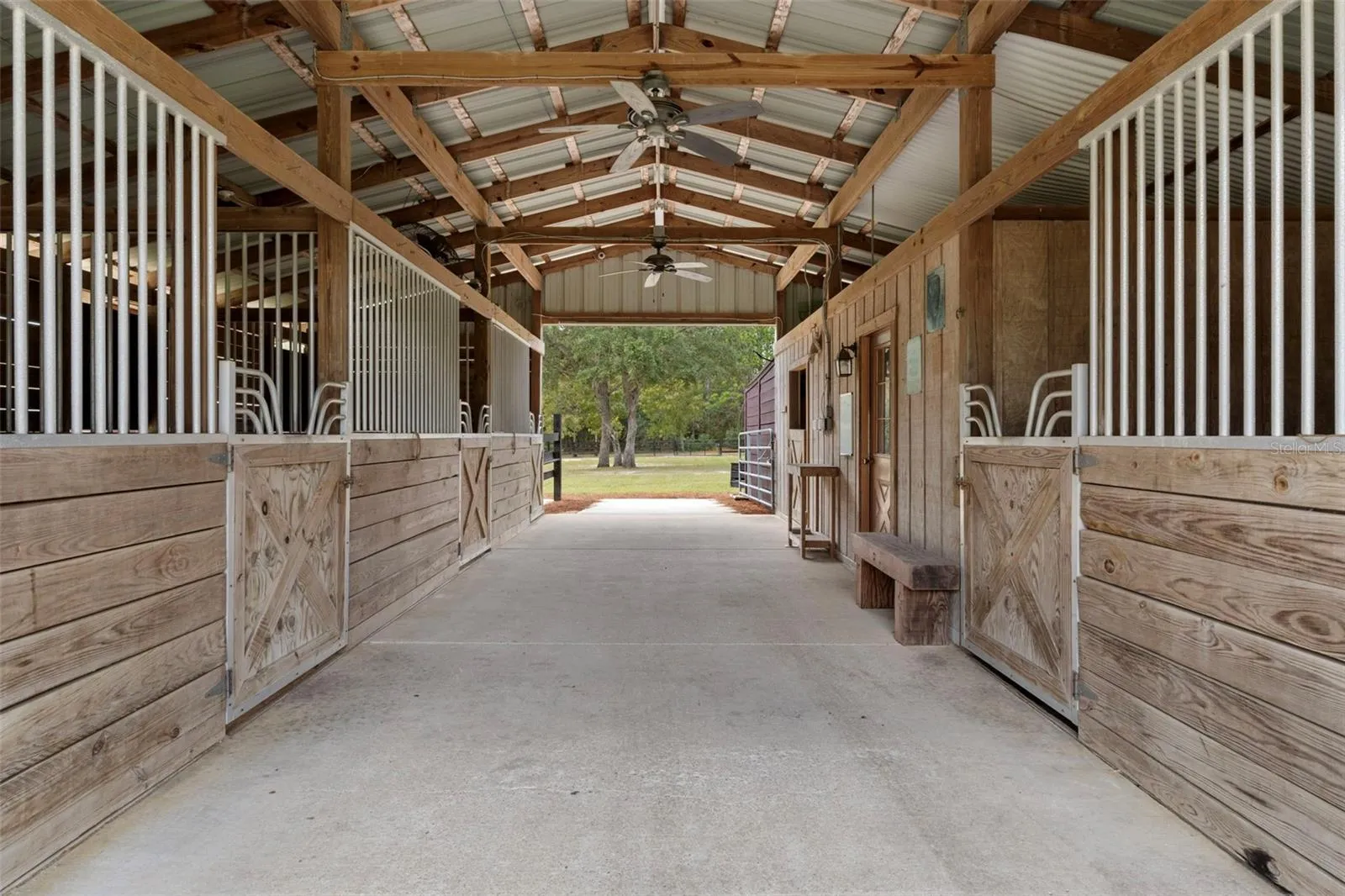 CUSTOM EQUESTRIAN ESTATE ON 7.39 ACRES OF IMPROVED PASTURE – Experience the perfect blend of LUXURY LIVING & EQUESTRIAN FUNCTIONALITY in this CUSTOM 5-BEDROOM (PLUS OFFICE), 3.5-BATH ESTATE designed for comfort, versatility, and connection to the land. With 2 PRIMARY SUITES, this home is ideal for MULTI-GENERATIONAL LIVING or accommodating a TRAINER OR STABLE HAND — the secondary suite features a PRIVATE SIDE ENTRANCE that opens into the main living area with convenient access to the HORSE BARN. Step inside and you’ll find ornate craftmanship and custom finishes throughout — from WOOD-BEAMED CEILINGS in the formal living and dining rooms to the WOOD-LOOK TILE FLOORS that add warmth and elegance. HIGH CEILINGS & ABUNDANT NATURAL LIGHT create an expansive, open, and airy feel throughout the home. The real living areas overloook the SCREENED-IN POOL AND SPA, providing year-round enjoyment and a seamless indoor-outdoor flow. Beyond the pool, the property transitions beautifully into FENCED, IRRIGATED PADDOCKS leading to a 4-STALL CENTER-AISLE BARN equipped with everything a discerning horse owner needs including MULTIPLE WASH RACKS WITH HOT WATER, FEED ROOM & SEPARATE TACK ROOM, ADDITIONAL EQUIPMENT STORAGE, SLIDING CROSS-BUCK STALL DOORS AND FEED DOORS, & BARN DOORS OPENING DIRECTLY TO PADDOCKS for easy turnout. The 7 GRASS PASTURES are irrigated by a private well, making maintenance effortless. For additional training, there’s a ROUND PEN, and behind the barn sits a 2,000 sq. ft. RV AND EQUIPMENT BARN with CONCRETE SLAB & ELECTRIC including 30 AMP & 50 AMP SERVICE. Backing directly to the 28-MILE PRIVATE HORSE TRAIL SYSTEM, this property offers quick trail access to the COMMUNITY EQUESTRIAN TRAINING CENTER featuring a large lighted RIDING ARENA, DRESSAGE ARENA, HUNT COURSE, & TRAIL COURSE. For those who compete or train regularly, it’s a dream setup — and just a short drive from OCALA’S WORLD EQUESTRIAN CENTER and FLORIDA HORSE PARK. Need more land? An ADDITIONAL 6.5-ACRE PARCEL is also available directly behind this property for expanded possibilities. This is a RARE OPPORTUNITY TO OWN A TRUE EQUESTRIAN LIFESTYLE ESTATE where LUXURY, LAND, & LOCATION unite perfectly. Don’t wait too long on this EXCEPTIONAL VALUE — properties offering this level of quality and equestrian infrastructure are few and far between.