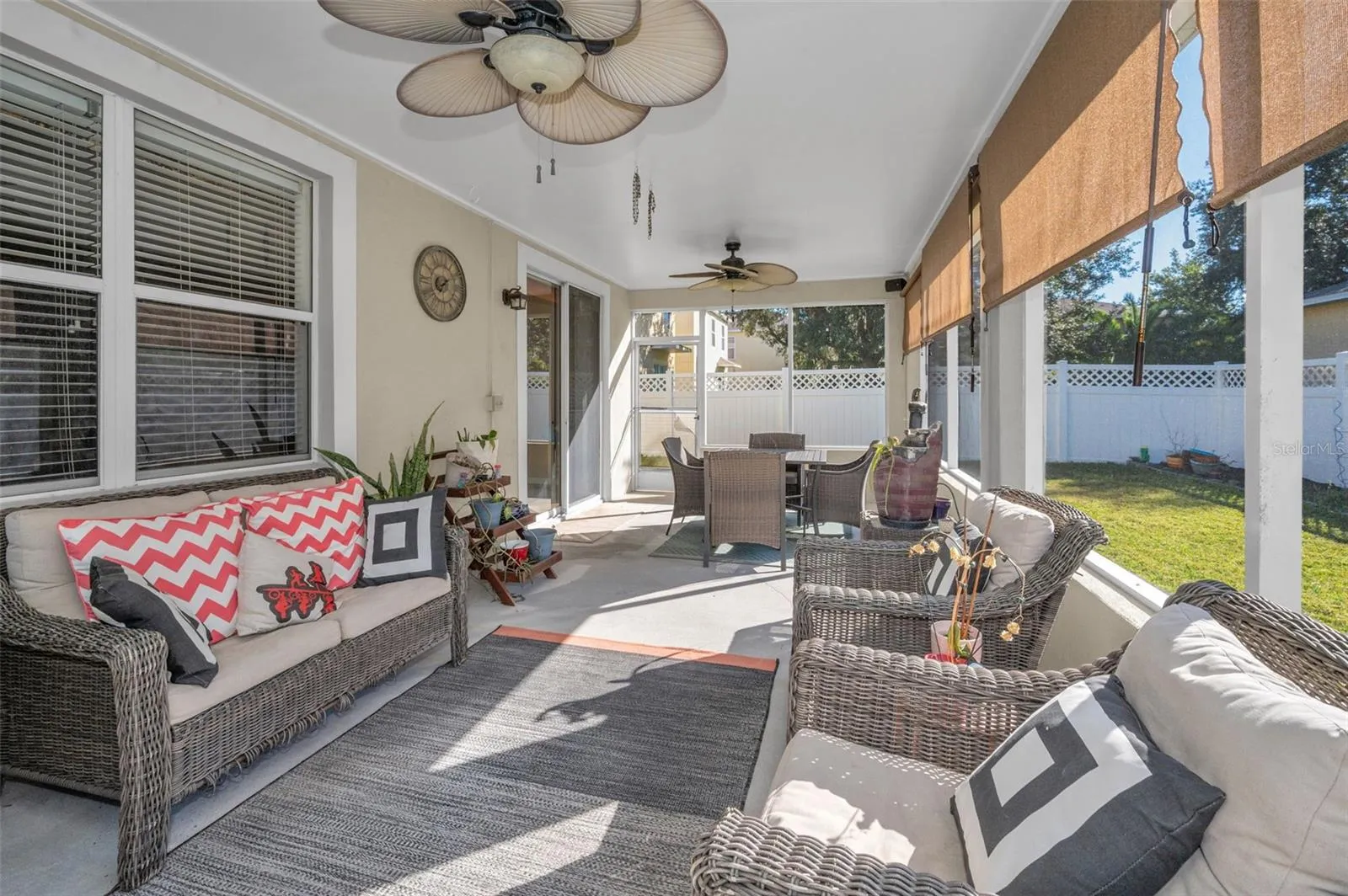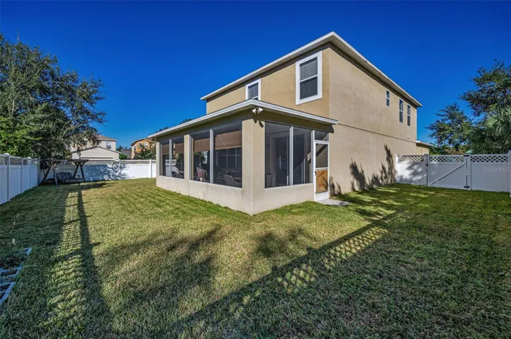 The kitchen is a showstopper—featuring newer stainless-steel appliances, no-touch faucets, and modern finishes throughout. A whole-house water filtration and softener system ensures fresh, clean water in every room. Step outside to your covered, screened-in porch overlooking the oversized backyard—perfect for relaxing or entertaining. The primary suite includes a walk-in with a custom California Closet system, adding both function and sophistication.