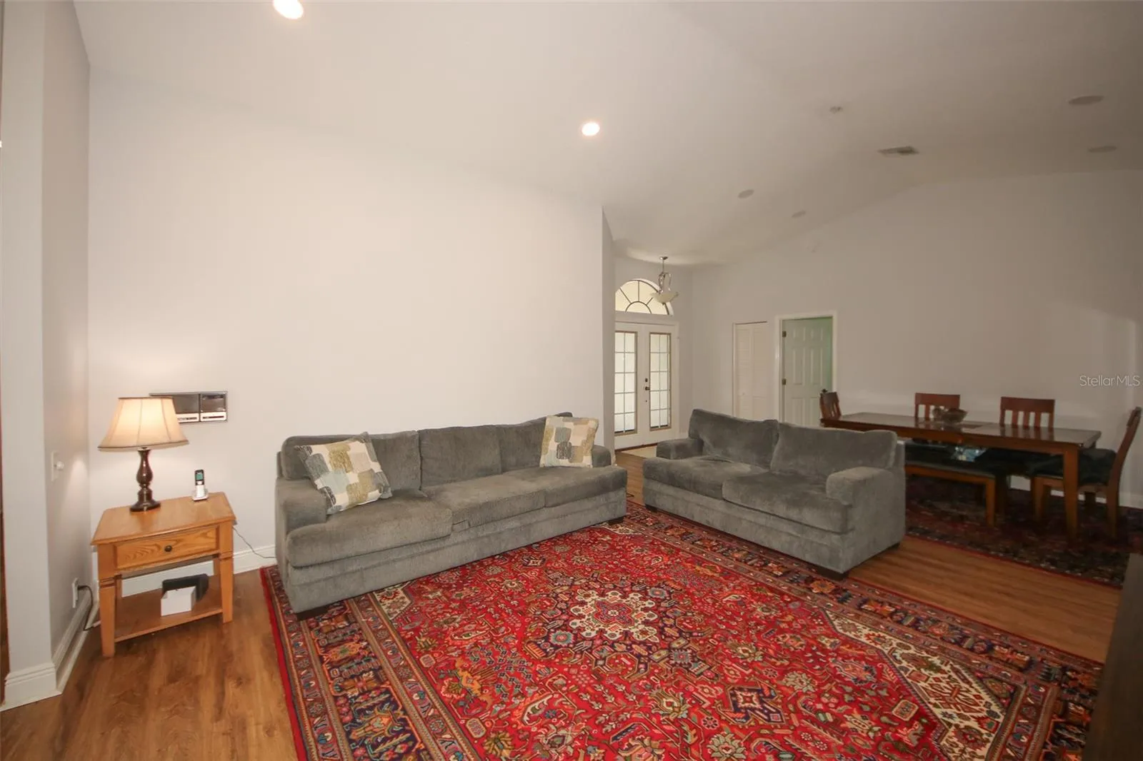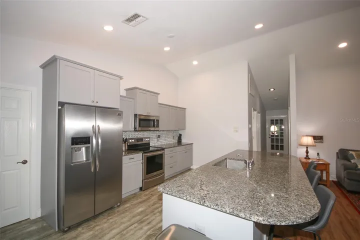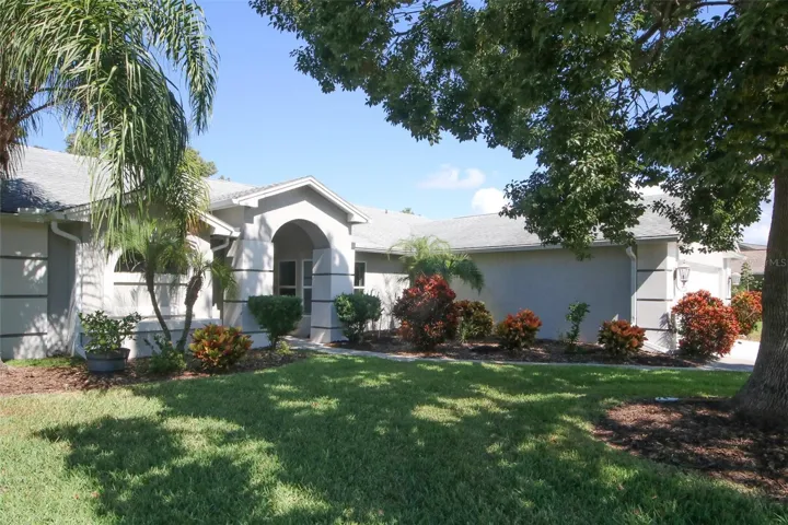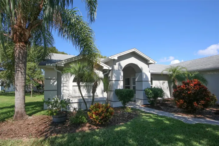 Welcome to this truly one-of-a-kind 3-bedroom, 3-full bath home situated in the highly sought-after Estates community of Hudson! This home features an open and split floor plan, ideal for both comfortable living and entertaining. Perfectly positioned near the Clubhouse, you will have easy access to newly renovated recreational amenities and a stunning pool—making relaxation and fun just steps away from your front door. Step inside to find airy, lofty ceilings, elegant, recessed lighting, and an abundance of windows that fill each space with natural sunlight. The open-concept layout seamlessly connects the living areas, while neutral colors, laminate and ceramic flooring, and marble windowsills add refined touches throughout. The remodeled kitchen is a chef’s dream, boasting granite countertops with a breakfast bar, stylish new cabinets, and top-of-the-line stainless-steel appliances. Enjoy your morning coffee at the dedicated coffee bar, complete with a bar fridge and space for a dinette table that overlooks the tranquil backyard. A spacious storage area off the kitchen provides ample room for all your extra items. The family/dining room combo features a convenient coat closet and is perfect for hosting gatherings. For even more entertaining space, this area flows into a versatile bonus room and a full bathroom, ideal for guests or as an entertainment hub. Step out to the lanai, which offers acrylic windows, ceiling fans, and an outdoor patio area primed for grilling. Electrical is already set up for a hot tub, enhancing the outdoor experience! If you prefer a quiet work-from-home environment, the bonus room can easily be transformed into a spacious office. The split floor plan ensures privacy and convenience. Two bedrooms share a full bath equipped with a shower/tub combo, and one bedroom features a pocket door for direct bathroom access. Storage is plentiful, with an enormous walk-in closet, a linen closet, and an oversized linen/storage closet located near the second full bath. The primary suite is tucked away on the opposite side of the home, offering its own walk-in closet and a luxurious en-suite bathroom. The en-suite boasts dual vessel bowl sinks, a step-down ceramic tiled shower with recessed lighting, and plenty of space to unwind. Ceiling fans installed throughout the home for year-round comfort, dual-paned windows for noise reduction and energy efficiency, marble windowsills and elegant fixtures, open and split layout for flexible living arrangements Enjoy all the perks of living in The Estates, with close proximity to the Clubhouse’s newly renovated recreational facilities and swimming pool. Whether you prefer family gatherings, quiet evenings, or hosting friends, this home’s unique floor plan is designed to meet your needs. Don’t miss your opportunity to own this truly exceptional home in Hudson. With its distinctive features, modern upgrades, and unbeatable location, this property is one in a million! Call today for your showing!