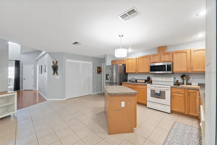 Welcome to a truly special home nestled on an oversized half-acre corner lot where space and privacy combine to create a rare offering in this desirable Weeki Wachee area. A brand-new roof, completed in August 2025, provides lasting peace of mind and adds to the home’s value. As you approach, the charming gable roof and welcoming screened front porch greet you — this unique space, under the main roof and offering plenty of privacy, feels like a cozy outdoor retreat yet serves as the gracious entry into the home. Step through double French doors with matching sidelights into a luminous foyer where tile flooring stretches into a living room anchored by vaulted ceilings, large gable-windows bathing the space in natural light, and beautiful wood flooring underfoot; the living room even features two closets, adding versatile storage in an open-concept layout that flows directly into the heart of the home. The kitchen shines with stylish counters, a central island, double sink under a window looking out to the yard, and tile flooring, while the adjacent dining area offers a built-in window seat and French doors leading out to the backyard oasis. Behind the scenes just off the kitchen you’ll find the convenient laundry closet. On the opposite side of the home, four spacious bedrooms provide ample room for family or guests; the primary suite boasts carpeted floors, an ensuite bathroom with dual sinks, tub/shower combo, and a walk-in closet. The second bath mirrors the tub/shower layout with a single sink. Outside, the completely fenced backyard with white PVC fencing and side gates offers a large tree-scattered yard, a small fire-pit for cozy evenings, and a concrete patio shaded by awnings over the French doors and nearby windows — a perfect setting for gardening, play, or simply enjoying Florida living. The three-car garage adds tremendous value and flexibility. And just beyond your doorstep, you’re located near one of Florida’s most enchanting destinations — the beloved Weeki Wachee Springs State Park — where you can watch the iconic mermaid shows and float down the crystal clear waters of the Weeki Wachee River amidst nature’s splendor. This home combines elegance, room to roam, quality updates, and immediate access to one of the Sunshine State’s most magical playgrounds — all in a serene corner-lot setting.