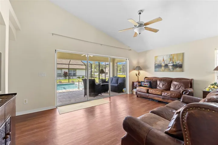 The real showstopper? The screened-in, heated pool sits just off the living room, with large sliding glass doors that showcase the sparkling water and provide easy access for seamless indoor-outdoor entertaining. Whether you’re hosting weekend BBQs, lounging with a book, or enjoying an evening swim, this backyard oasis lets you embrace Florida living all year long.