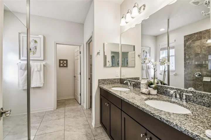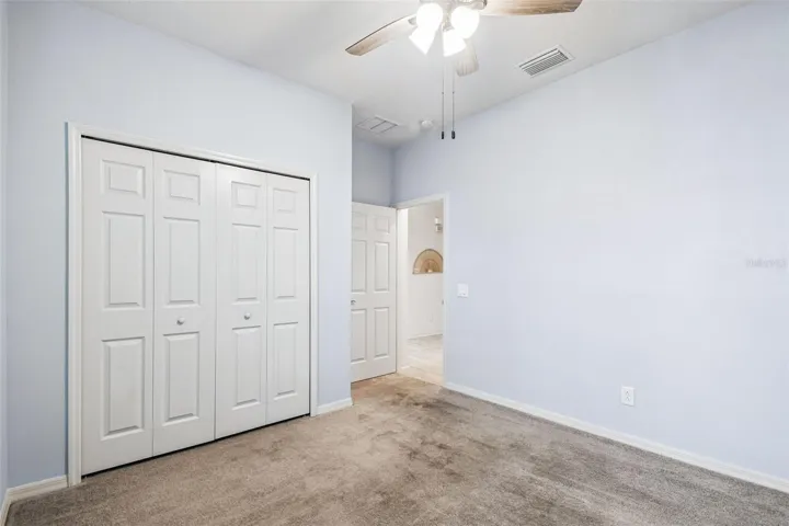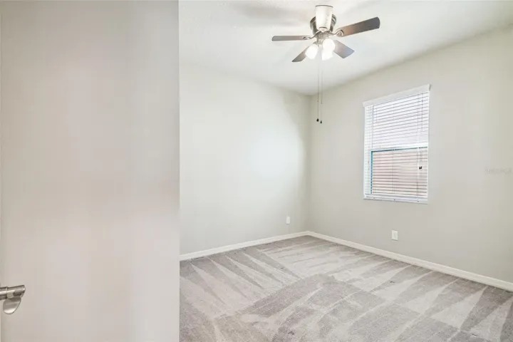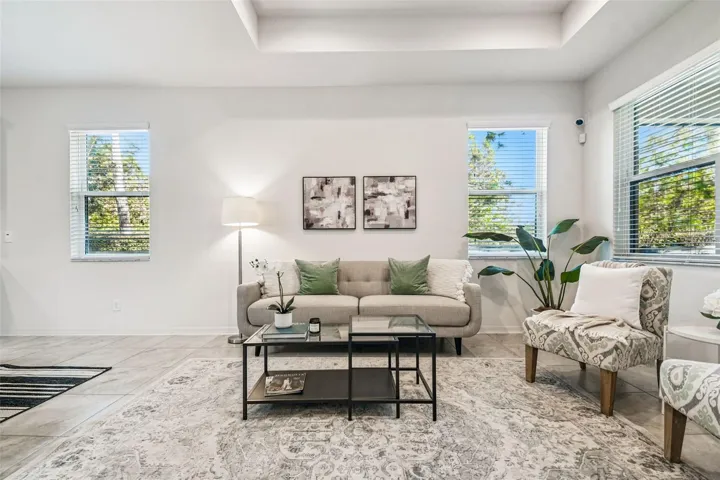 Wanting that small home town feel in Florida? Welcoming this STUNNING west facing Avalon by MI Homes with 3 bedrooms PLUS a dedicated office, 2 full bathrooms, a 2-car rear garage with over 1750 sq ft in the community of Starkey Ranch in Odessa, FL. Beautifully tucked away on a semi-private lot, this home is situated on a green space shared by only a lucky few. Single-story with a mediterranean exterior style, you will LOVE enjoying the spacious covered front porch. Once inside, take note of the open, modern, yet cozy feel of the home. Neutral tile flooring throughout the main area. To your left is room #1, this could be a bedroom (no closet), an office, a playroom, a craft room, whatever fits your needs. Has modern glass paned french doors. To your right, is room #2 and #3 with lots of natural light and privacy. A full bathroom with tub/shower combo is conveniently placed for both rooms. Come into the heart of the home and find yourself an open floor plan with a stunning kitchen. Dark espresso 42 inch cabinets with deluxe crown molding. Ample granite counter space, stainless steel appliances, and gas range. Center island for additional seating. The living room/kitchen concept makes it easy to converse and entertain. Large picturesque windows showcase a beautiful view of the surroundings. Tray ceiling details. Down the hallway is the primary retreat. Cozy and inviting with tall ceilings and an ensuite with tiled shower and glass doors. Walk-in closet. The laundry room is off the primary retreat tucked away by the garage entry door. Built-in cabinets provided even more storage. The screened-in lanai is perfect for reading a book, easy conversation with drinks, and adds to the useable living space. Faces east so it will not get overly hot during the day. Keep the doors open during the cooler months and don’t worry about the bugs! The 2 car garage has the epoxy flooring and water softener. Full irrigation-reclaimed water. No neighbors on one side and a gorgeous green space right off of your front porch to enjoy. A-rated Starkey Ranch K-8 school is located within the community a short distance. Across the street, is Cunningham Lake which provides a trail around it to walk, bike, or run along with a multi-purpose space for all activities. Small playground as well. Starkey offers 3 community state-of-the-art pools, one with a spray park, TONS of green space, playgrounds, dog parks, a public library, tennis courts, basketball courts, a track, and Pasco county’s district park for baseball, soccer and lacrosse. Gorgeous community landscaping with not only palm trees but northern trees; you can still enjoy the leaves during the fall. Wood fence encompasses the community for that “ranch” feel.