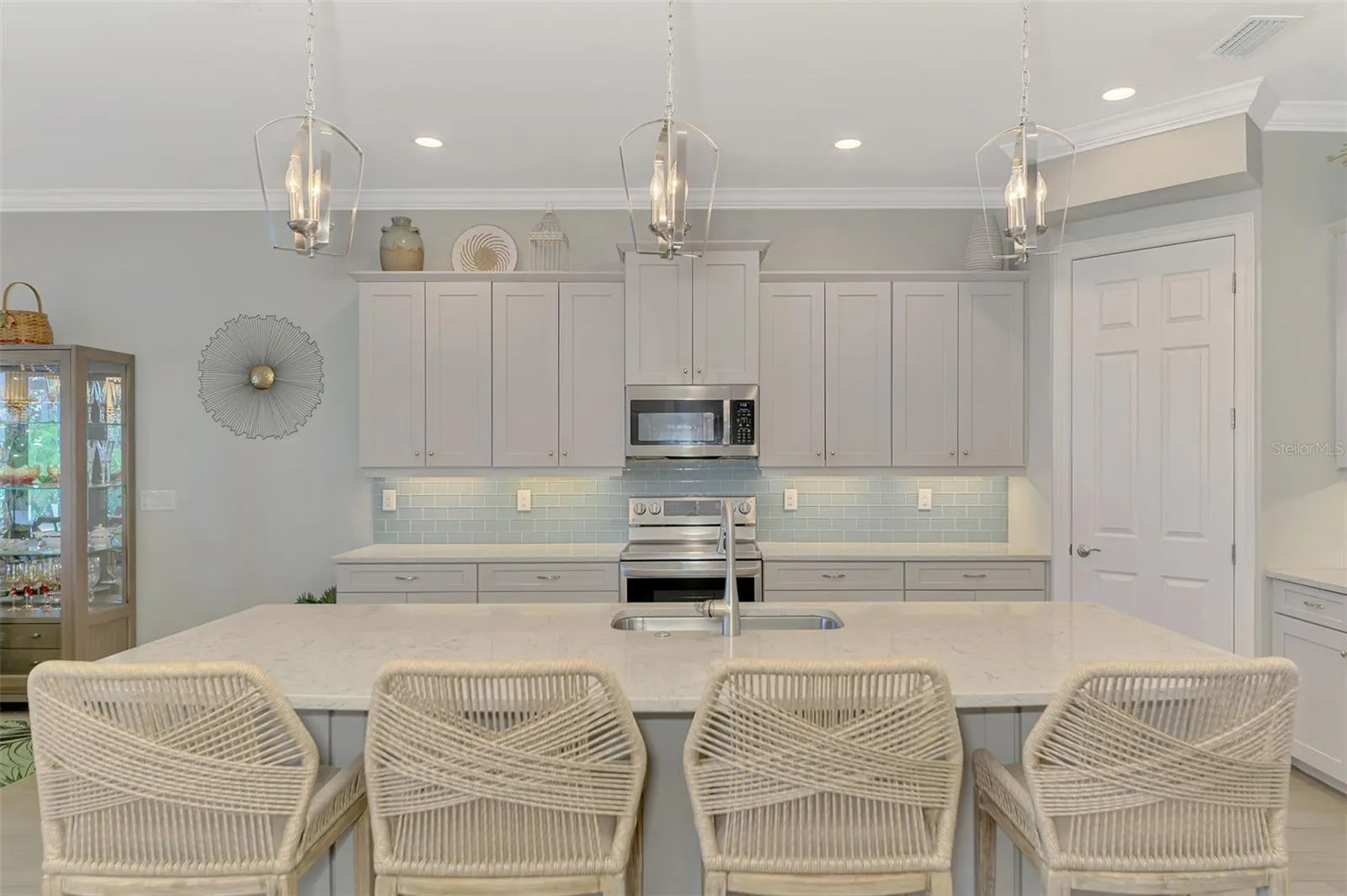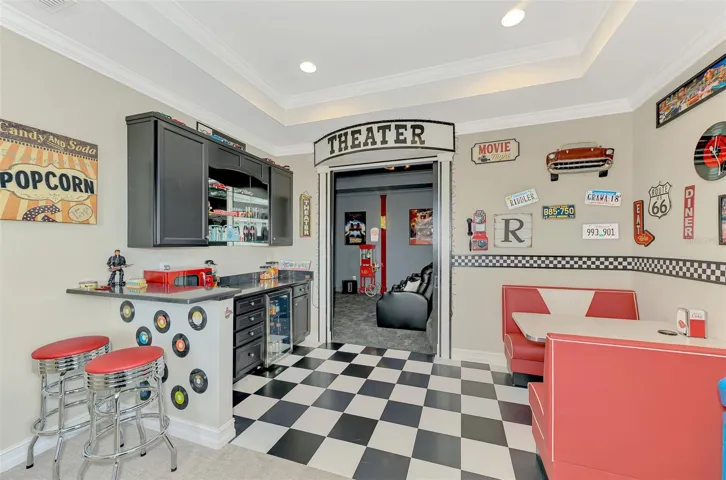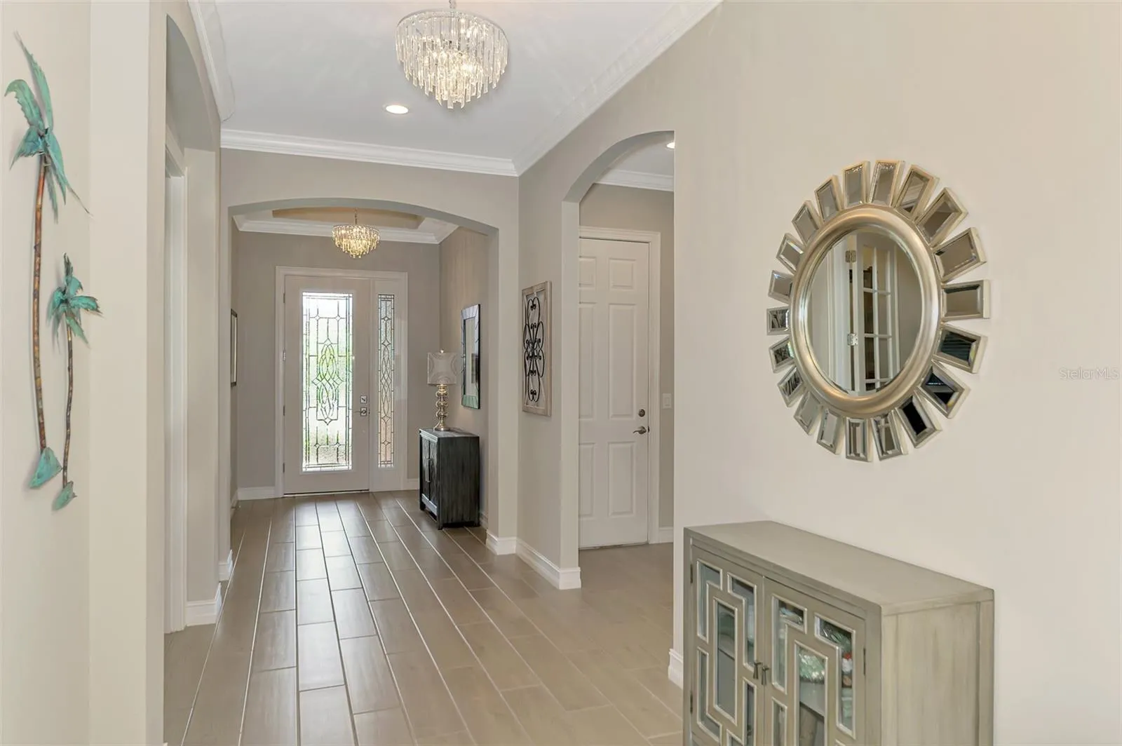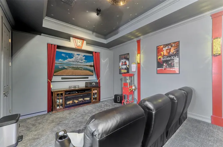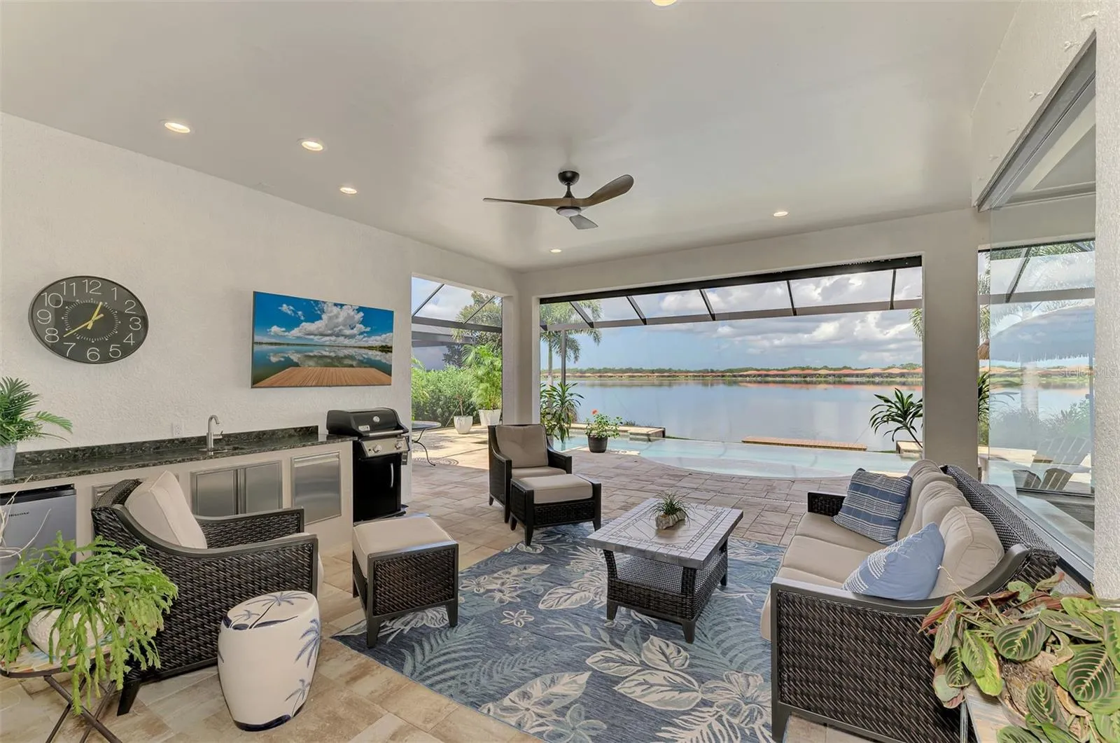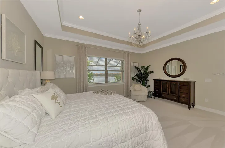 Toscana Isles – This beautifully appointed 3-bedroom, 6-bath home in the gated community of Toscana Isles offers rare waterfront living with spectacular lake views and unforgettable sunsets. Situated on a 65-acre naturally sprung lake, residents can enjoy fishing, kayaking, canoeing, and electric boating directly from their private dock. The heated saltwater infinity pool with spa overlooks the lake, creating the ultimate backdrop for outdoor living. The expansive lanai with wide-screen enclosure, outdoor kitchen, and a rare poolside half bath provides the perfect setting for entertaining. Inside, the home is designed with elegance and function in mind. The gourmet kitchen features a large quartz island, abundant cabinetry, newer stainless-steel appliances, and opens to a dining room with an aquarium-style window framing the lake and pool. Upgrades include tray ceilings, crown molding, 8-ft doors, crystal chandeliers, architectural archways, a new impact front door, auto pool fill, and an electric fireplace. The owner’s suite offers a spacious retreat with a luxurious bath and dual custom walk-in closets. Additional features include a separate office, well-equipped laundry room with sink and cabinets, and a 3-car garage. The second level is an entertainer’s dream—complete with a 9-seat movie theater (with light-up cup holders), game room, kitchenette, and full bath. Toscana Isles delivers a resort lifestyle with world-class amenities, including tennis, pickleball, bocce, fitness center, clubhouse, resort pool, fire pit, and golf-cart friendly living. This home is simply one of a kind—an impressive and unique waterfront property offering luxury, lifestyle, and unforgettable sunsets. Quick access to the beach, commerce, Legacy Bike Trail, parks and the new Sarasota Memorial Hospital. You have it all!
