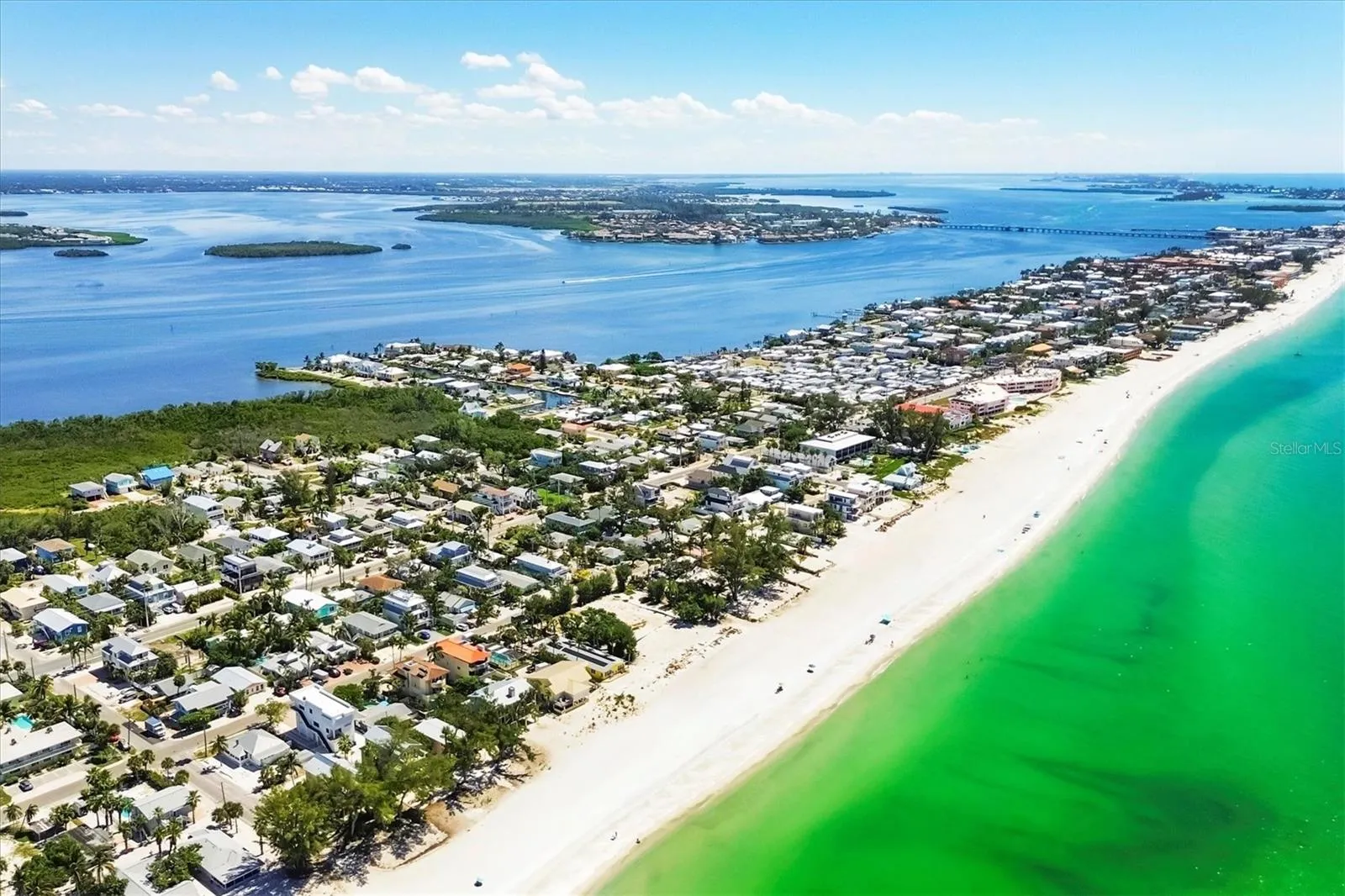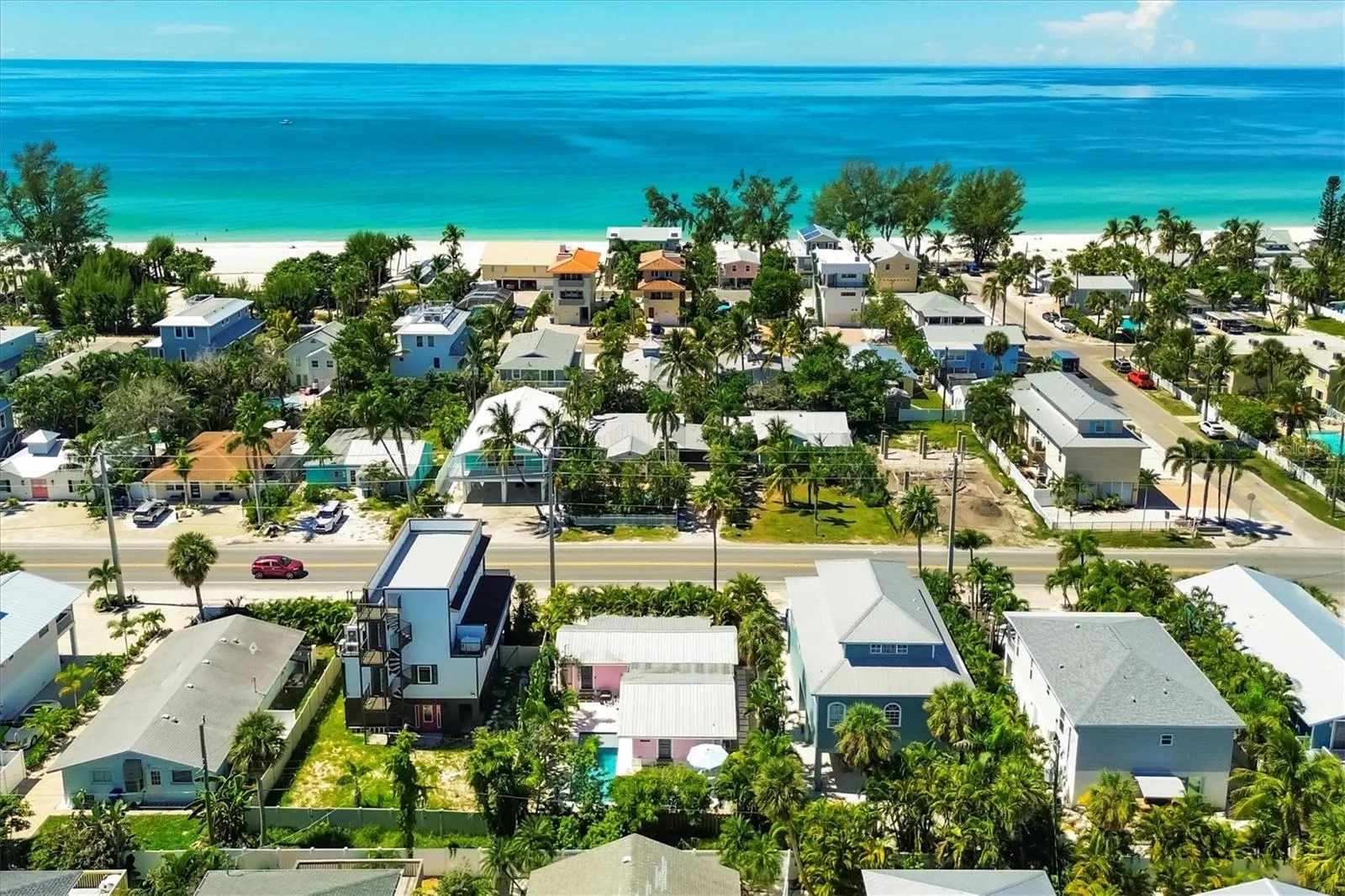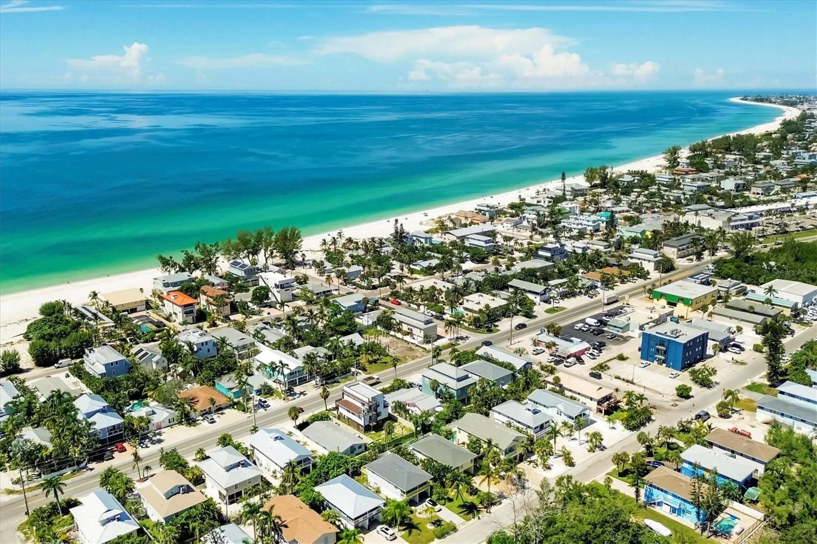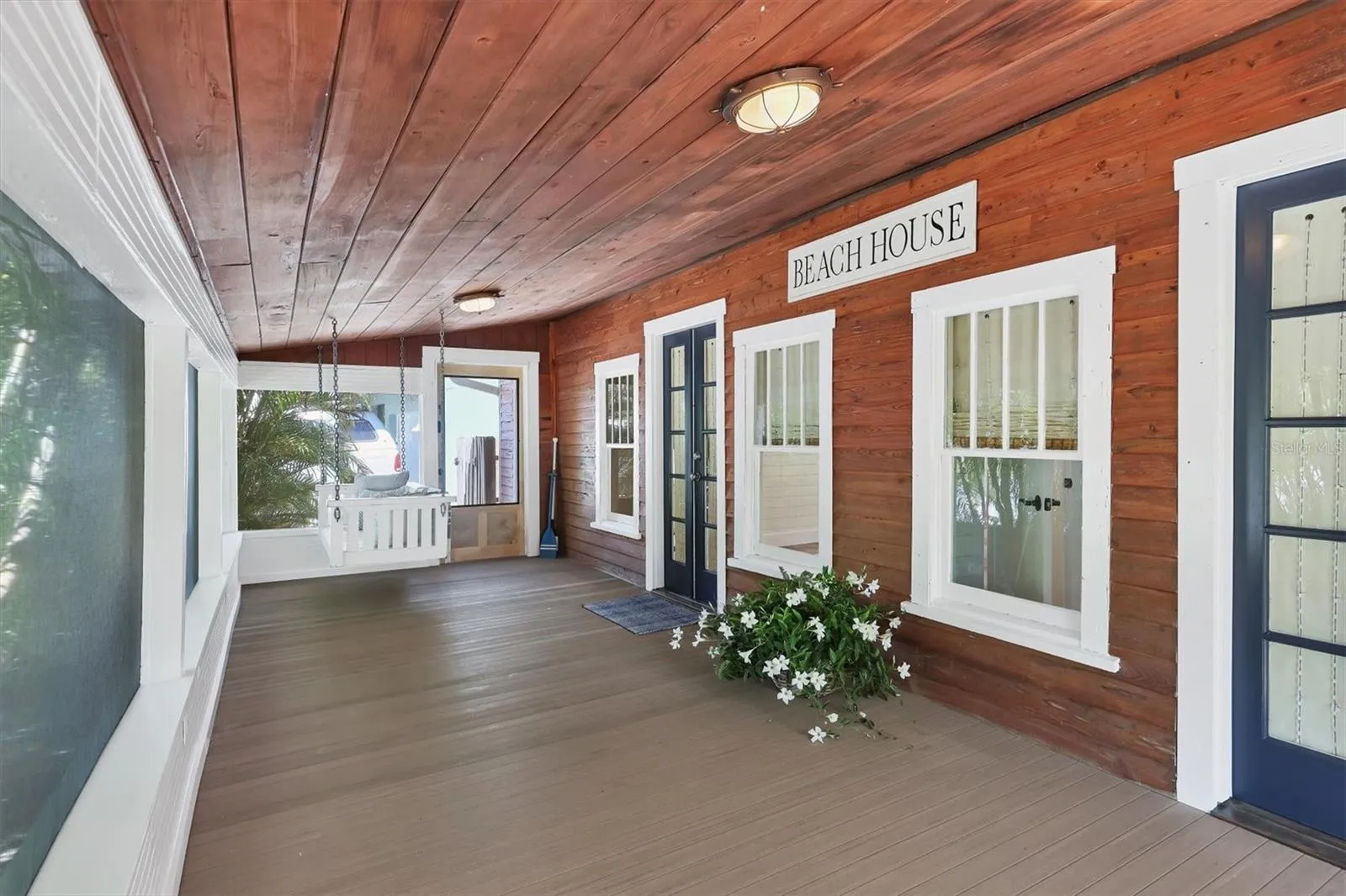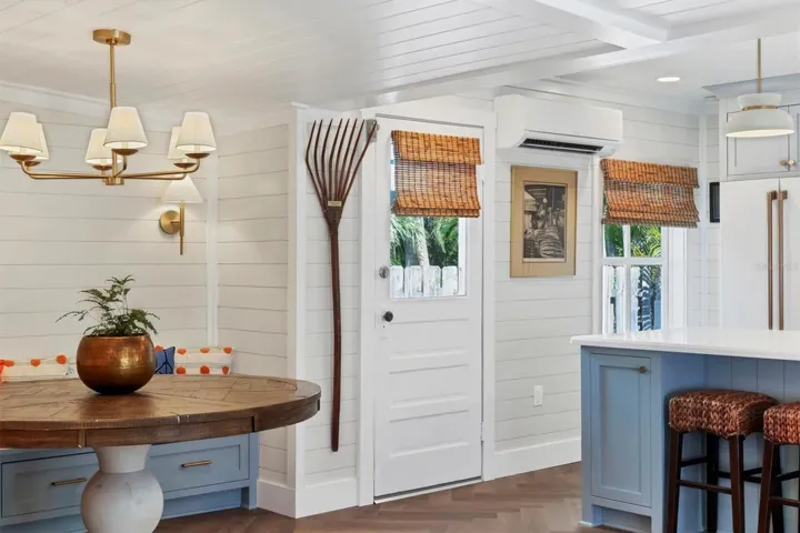 Step onto the spacious screened front porch, now featuring Timber Tech by Azek Porch Collection decking, framed by original Pecky Cypress siding, and enjoy the timeless charm of this lovingly restored 1940s 2 bed / 2 bath craftsman beach cottage just steps from the Gulf. This home blends Old Florida character with today’s comfort. Inside, new shiplap walls pair with Daltile’s Asher Bend luxury vinyl flooring in a herringbone pattern over a brand-new subfloor. This waterproof, scratch resistant surface combines the warmth of wood with the resilient vinyl, perfect for beachside living. The open kitchen boasts custom floor-to-ceiling cabinetry handcrafted in Pennsylvania, a built-in breakfast nook with matching benches, a Café Series appliance package, brushed bronze hardware, and Carrara Emporio acrylic solid surface countertops for beauty and practicality. Both bathrooms feature spa-inspired tilework, one with a custom glass shower enclosure. The primary suite opens directly to the pool, while the guest bedroom provides its own private layout. A newly designed laundry suite adds everyday convenience with an Electrolux washer and dryer plus a high built-in countertop for organization. Outdoors, enjoy a fenced backyard oasis with an Agnelli-installed, custom-designed saltwater pool completed in 2022, surrounded by palm-lined landscaping for a private retreat. Behind the scenes are new plumbing and light fixtures throughout, spray foam insulation under the floors, new batt insulation in the walls, and carefully sourced finishes, all completed in 2025. With proven rental income managed by the owner and even stronger potential under professional management, the Pink Palm is an iconic island cottage reimagined for today.