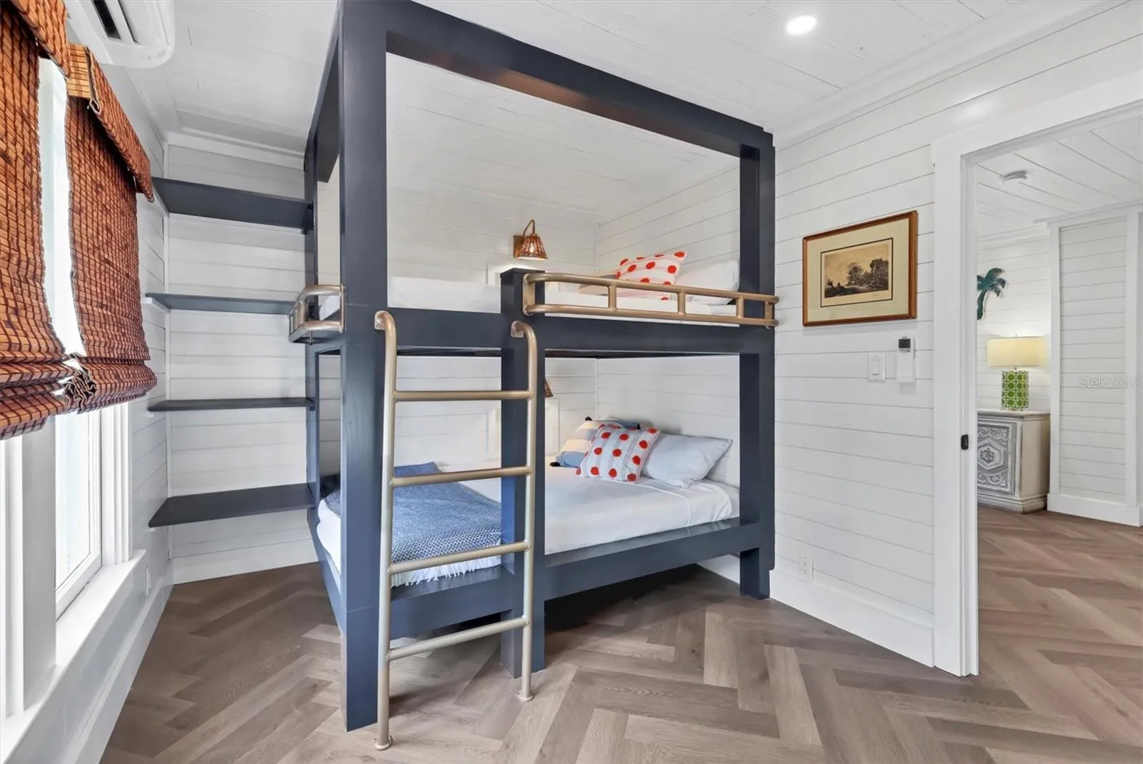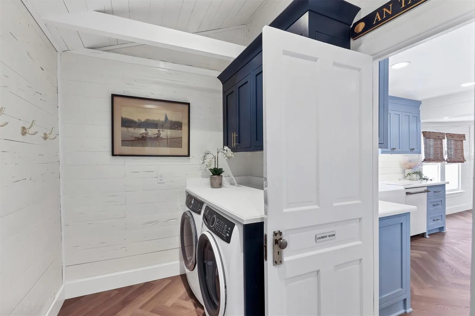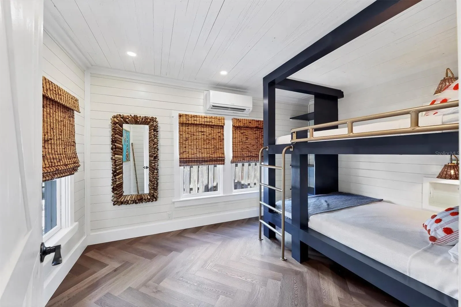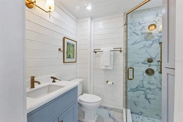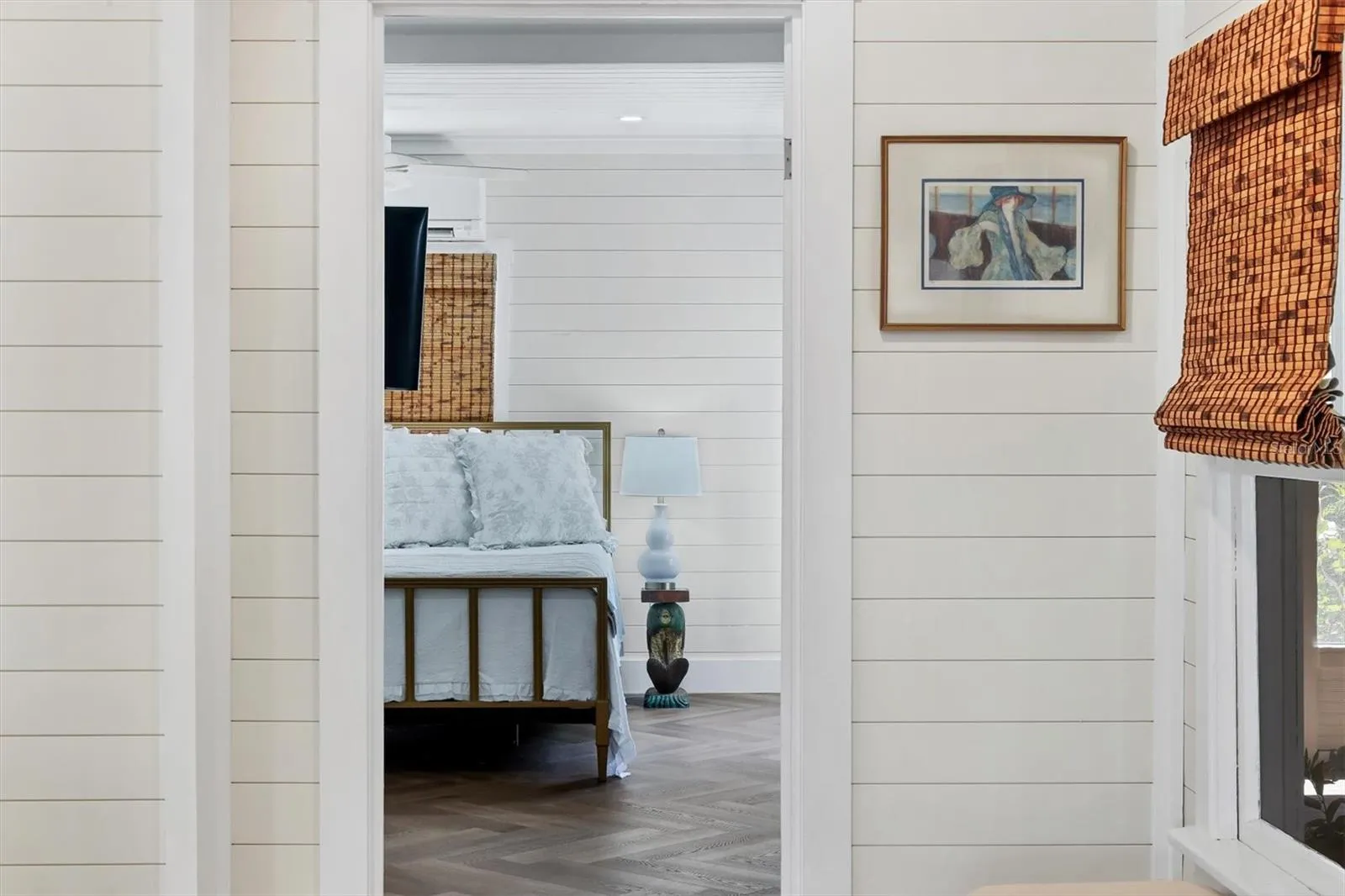 Step onto the spacious screened front porch, now featuring Timber Tech by Azek Porch Collection decking, framed by original Pecky Cypress siding, and enjoy the timeless charm of this lovingly restored 1940s 2 bed / 2 bath craftsman beach cottage just steps from the Gulf. This home blends Old Florida character with today’s comfort. Inside, new shiplap walls pair with Daltile’s Asher Bend luxury vinyl flooring in a herringbone pattern over a brand-new subfloor. This waterproof, scratch resistant surface combines the warmth of wood with the resilient vinyl, perfect for beachside living. The open kitchen boasts custom floor-to-ceiling cabinetry handcrafted in Pennsylvania, a built-in breakfast nook with matching benches, a Café Series appliance package, brushed bronze hardware, and Carrara Emporio acrylic solid surface countertops for beauty and practicality. Both bathrooms feature spa-inspired tilework, one with a custom glass shower enclosure. The primary suite opens directly to the pool, while the guest bedroom provides its own private layout. A newly designed laundry suite adds everyday convenience with an Electrolux washer and dryer plus a high built-in countertop for organization. Outdoors, enjoy a fenced backyard oasis with an Agnelli-installed, custom-designed saltwater pool completed in 2022, surrounded by palm-lined landscaping for a private retreat. Behind the scenes are new plumbing and light fixtures throughout, spray foam insulation under the floors, new batt insulation in the walls, and carefully sourced finishes, all completed in 2025. With proven rental income managed by the owner and even stronger potential under professional management, the Pink Palm is an iconic island cottage reimagined for today.