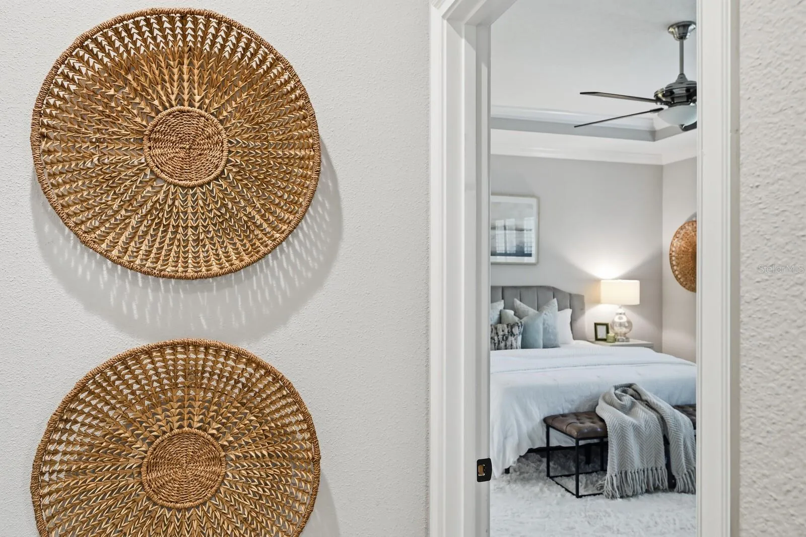 Enjoy easy living in this newer and spacious home in the highly desirable gated community of Oakleaf Hammock. This 2018-built home features a generous 3,201 square feet with 5 bedrooms, 3.5 bathrooms and 3 car garage. The primary suite is conveniently located on the main floor and boasts a tray ceiling, plantation shutters, extra spacious walk-in closet, en-suite bath with garden tub and dual sink quartz countertop.
