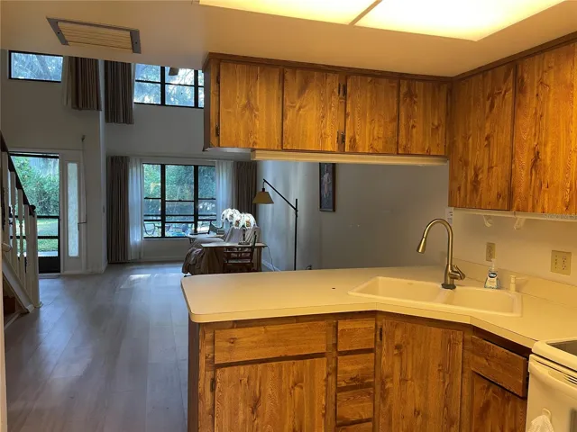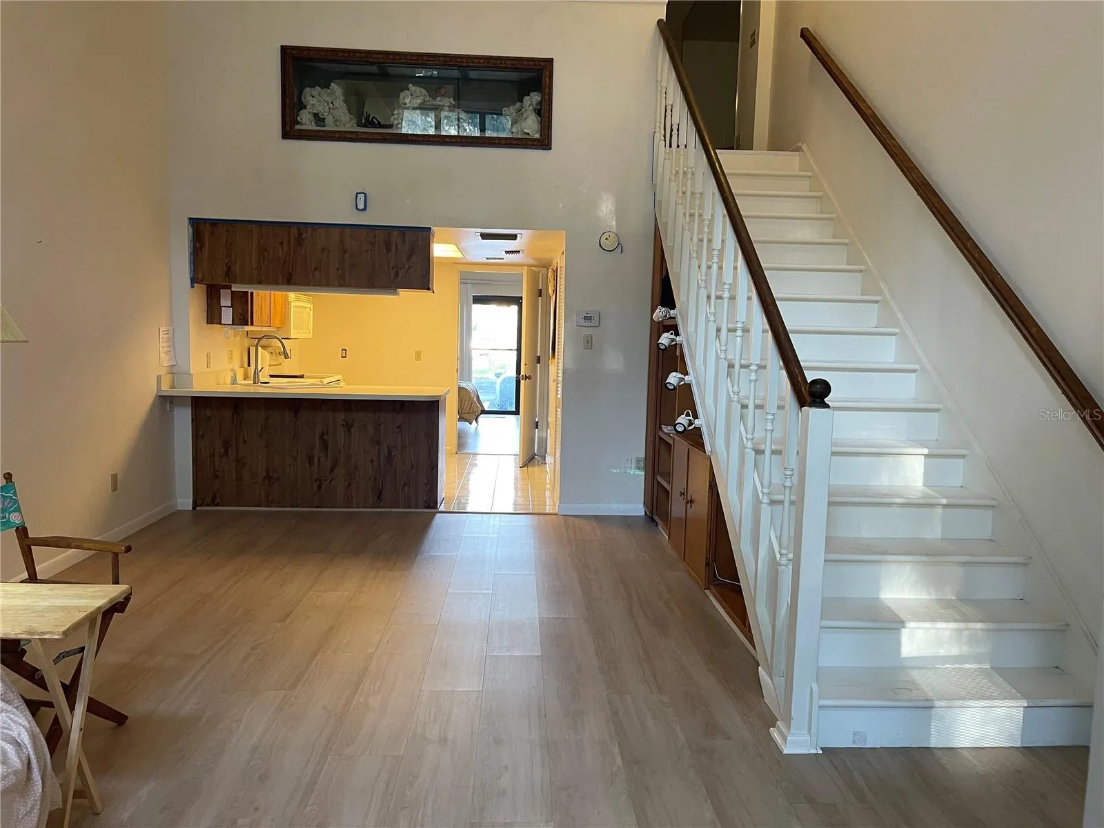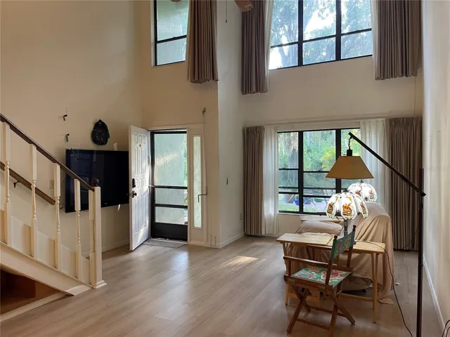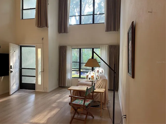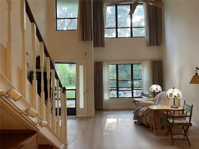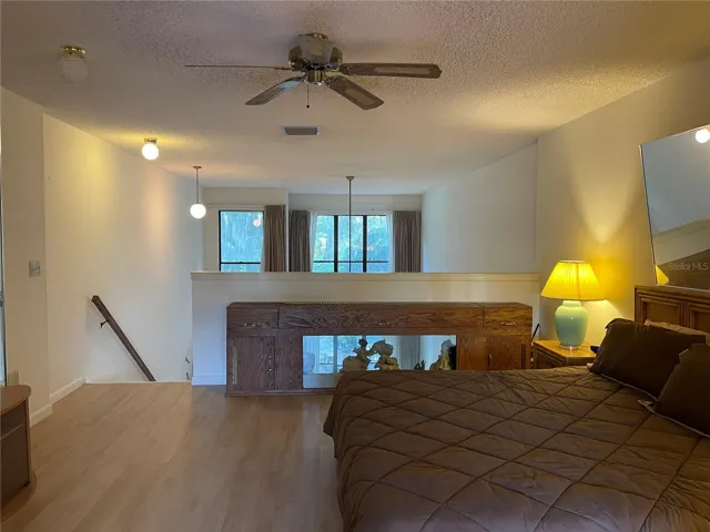 Condo located in front of a beautiful conservation area with grassy lawn, pines, and cypress trees at a distance. This condo is situated in a gated world renown nudist community in Pasco County. Owners are allowed to rent their condos out short or long term. The downstairs bedroom is often converted to being a studio lockout rental. Electric hurricane shutters were installed years back outside the windows which is a rare upgrade seen in this subdivision. The downstairs bedroom has glass exit door that leads to the parking lot. All windows have drawn shades and drapes. Flat screen TV in the living room and spare furniture will convey. Fish aquarium at loft upstairs bedroom and seen from living room on the first floor will also stay. Built in shelving under stair rail provides extra storage. Downstairs closet has washer dryer hook up. Downstairs bedroom has ensuite shower, tub and sink. The executor of the estate put in new vinyl floors in living areas except the bathrooms. Upstairs loft bedroom has private ensuite bathroom with tub shower combo, walk in closet and linen closet. This condo is an easy fixer upper; it could use fresh paint, new appliances and light fixtures. This condo is waiting for you to add your personal style. With a paid membership to the Resort owners can enjoy the resort membership which include heated pools, hot tubs, water volleyball, pickle ball, nightclub, sports bar, karaoke and lots more including the restaurant. Condo dues covers a lot and internet and cable. This condo is in the final state of probate with the executor assigned to the estate. Easy Show. Community located within 40 minutes of Tampa International Airport, less than one hour from the Gulf of America, close to local public golf courses, other nudist resorts, hospitals, shopping and restaurants. Only minutes from Tampa and Wesley Chapel.