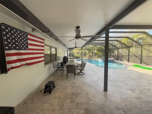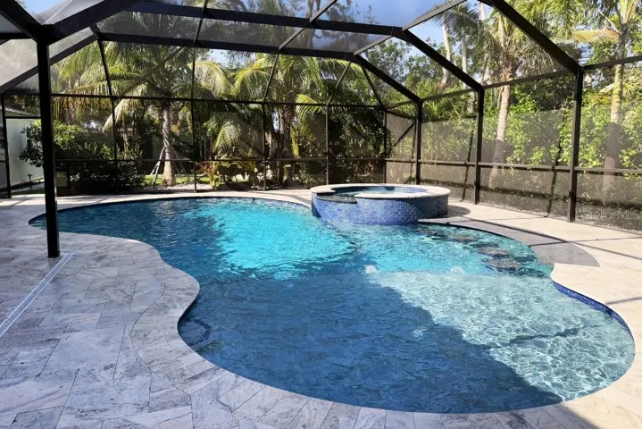 At the heart of it all lies a brand-new 10-foot-deep saltwater pool, one of the only true deep-water residential pools in the area. Crafted with travertine decking, in-pool dining and seating areas, and surrounded by lush artificial turf for a maintenance-free experience, this space is as breathtaking as it is functional. The pool is powered by an advanced Hayward system, including a state-of-the-art heater and controller—all still under warranty—giving you effortless control over temperature, lighting, and features. Above it all, the elite roof system keeps the covered patio up to 15 degrees cooler, ensuring year-round enjoyment no matter the Florida heat.