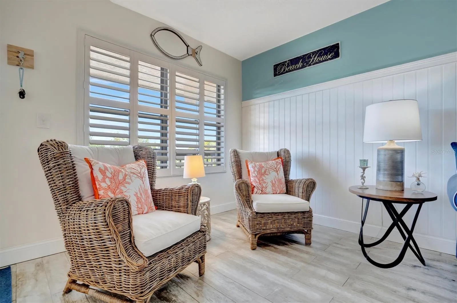 This beautifully renovated, turn-key furnished condo is a hidden oasis in the heart of Bradenton, with location as a standout feature. It offers easy access to Sarasota, Anna Maria Island, Gulf beaches, Bradenton’s keys, I-75, and downtown. This spacious 1-bedroom, 1.5-bath home, just under 1,000 square feet, is filled with high-end upgrades and comes completely furnished, including all Coastal décor, linens, and kitchenware—making it truly move-in ready. Quality tile plank flooring flows throughout, enhancing the clean, modern design. The extended kitchen is a showstopper, featuring an expansive quartz-topped island that blends style and function—perfect for meal prep, casual dining, or entertaining. Additional upgrades include a designer backsplash, soft-close drawers, raised soffits, and stainless steel appliances, offering both elegance and practicality. Stylish plantation shutters on the front and back windows, along with center-opening textured vertical blinds, add to the long list of extras. Upgraded lighting, outlets, and fans elevate the contemporary ambiance, while a front-door sliding screen allows for refreshing cross breezes. This top-floor unit with no neighbors above enjoys peaceful living with an abundance of natural light and serene water views, accompanied by the soothing sounds of a fountain. The lanai, finished with matching wood plank tile, overlooks lush landscaping, creating a peaceful retreat. Situated in Woodpark at DeSoto Square, a gated 55+ community, residents can enjoy amenities like a heated pool, spa, and scenic walking paths around the ponds. The building is pet-friendly and includes designated parking plus a storage space for beach gear. With its unbeatable location and tasteful Coastal-inspired design, this home is the ideal Florida getaway, close to Sarasota’s cultural offerings, Bradenton’s Riverwalk, and Tampa’s vibrant attractions.
