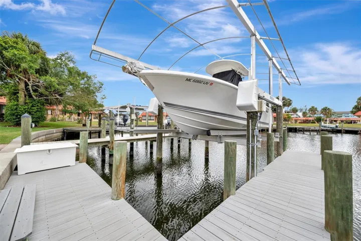 Welcome to your WATERFRONT paradise in the highly sought-after gated community of Palma Sola Harbour! Walk out your back door to your own private dock equipped with a 10,000-pound BOAT LIFT AND COVER, providing quick and easy access to Palma Sola Bay and the Gulf of Mexico. This beautifully updated 2-bedroom, 2-bathroom condo offers the perfect blend of coastal living and modern comfort. Step inside to find a bright, open layout featuring ceramic tile floors throughout, an updated kitchen, and spacious living areas that flow seamlessly to the screened lanai — ideal for relaxing or entertaining while enjoying peaceful canal views. Palma Sola Harbour is a gated, waterfront community offering resort-style amenities including two heated pools, a clubhouse, tennis and pickleball courts, two dry saunas, a fitness center, a workshop with lots of tools, and a billiards. Enjoy maintenance-free living just minutes from Bradenton Beach, Anna Maria Island, shopping, dining, and more. Don’t miss this opportunity to live the Florida lifestyle at its best!