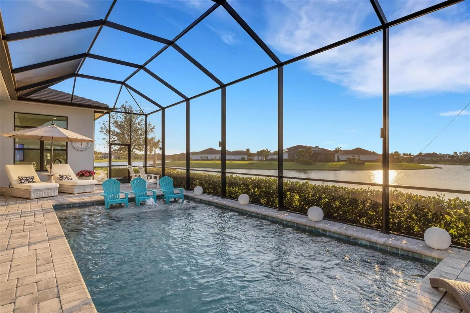 Welcome to 8968 Artisan Way, a stunning three-bedroom, five bath residence nestled in an upscale gated community in the heart of Sarasota. This beautifully designed home sits on an oversized lot, offering both privacy and room to relax. Enjoy breathtaking west-facing views that deliver unforgettable sunsets from your backyard and lanai. Relax by your gorgeous private pool and enjoy the expansive water views.