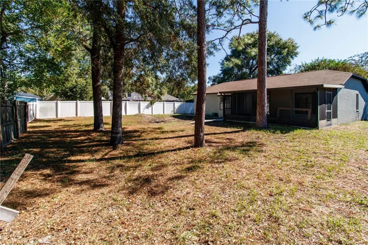 Welcome to this three bedroom, two bathroom home in the heart of Spring Hill. It features a split floor plan with the primary bedroom and bathroom on the right side and two bedrooms and a bathroom on the left. When you walk in you will find an open floor plan with a large living room and dining area that leads outside to a newly screened lanai. The kitchen has a peninsula and is open to the dining room. It is located on a large fenced in yard for privacy and plenty of room for your pets to roam. The carpet has been removed from the living/dining room and two of the bedrooms so the new owner has the opportunity to choose the flooring that best suites their taste. The exterior has been freshly painted earlier this month.