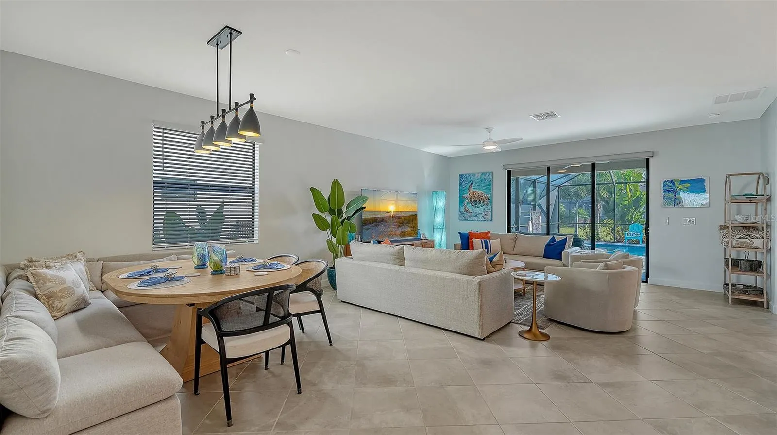 Welcome to Casa De Bleu, a luxurious 3-bedroom, 3-bathroom retreat in the coveted Lorraine Lakes community. This turnkey home combines high-end decor with thoughtful design to deliver an effortless living experience from the moment you step inside. The primary suite is a true sanctuary featuring a king-size bed, a large flat-screen TV, and an attached bathroom with a dual vanity and a walk-in shower. The second bedroom offers a queen-size bed, its own TV, and a private bathroom with a shower/tub combo for comfort and privacy. The third bedroom is perfect for guests or family, with two twin beds, a TV, and easy access to the third bathroom, also equipped with a shower/tub combo.The living room beckons with plush furnishings and a premium entertainment setup, including a sound bar with bass and speakers and a large TV for movie nights or downtime. The chef’s kitchen is fully equipped with stainless-steel appliances and substantial counter space for culinary adventures. Adjacent, the dining area features chic decor and a stylish light fixture, creating an inviting atmosphere for every meal. Step outside to the private pool—an ideal spot to soak up the sun or unwind after a day of exploration. This beautiful home offers an exceptional living experience with every detail carefully considered. Residents of the Clubhouse enjoy a state-of-the-art fitness center, including a High-Intensity Exercise room, punching bag, TRX stand, large tire flip, and rope whip. The resort-style community pool, splash park, playground, and sports facilities—basketball, tennis, and volleyball courts—provide ample recreation. Bocce ball courts sit near the Town Center pools, with pools open dawn to dusk in accordance with health regulations. The fitness center is available 24/7, and nighttime tennis is illuminated for players. Please note: pickleball play is allowed 7:30 AM–9:00 PM and courts are not lit. Parking is available in the driveway for 2–3 vehicles; (garage unavailable)street parking is allowed but not overnight. The home includes beach chairs, umbrellas, plus pickleball, tennis, putting clubs, and various sports balls. A pack & play and a wheeled crib are provided for families, and blackout curtains are installed in every room. The property features a whole-house water softener and filtration system.Please be aware that reservations may require completion of a Homeowners Association application. This home is booked through April. May 1st is the first available date. Call today!!!