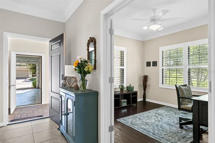 One or more photo(s) has been virtually staged. Welcome to this beautifully maintained, maintenance-free villa located at 1282 Backspin Drive in the highly desirable, gated community of Boca Royale Golf & Country Club, where resort-style living is part of everyday life. This thoughtfully upgraded home features 2 bedrooms, 2 bathrooms, a spacious den/office, set within 1,524 square feet of elegant living space, with a two car garage for your comfort and convenience. The open-concept layout is perfect for entertaining, enhanced by tray ceilings, granite countertops, crown molding, and upgraded cabinetry. Plantation shutters add both style and function, while the extended lanai offers a peaceful retreat with serene lake views, perfect for bird watching. For peace of mind, the home includes lockable hurricane shutters and overhead garage storage. As a resident of Boca Royale, enjoy access to a newly redesigned 18-hole golf course, resort-style pool, fitness center, Har-Tru tennis courts, pickleball courts, walking trails, and dog park. The recently renovated clubhouse features elegant dining and a stylish bar with stunning golf course views. Optional memberships for golf, tennis, and pickleball are available. Ideally located minutes from Manasota Key’s beaches, the charming shops of Dearborn Street, and the Atlanta Braves’ spring training facility in Wellen Park. Experience luxury, comfort, and community at its finest.