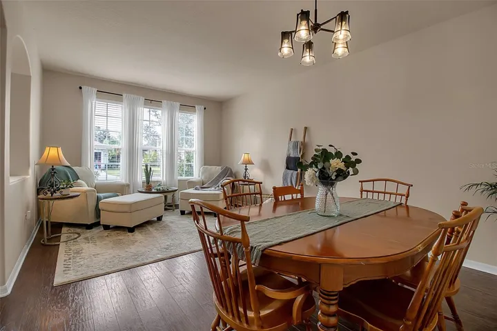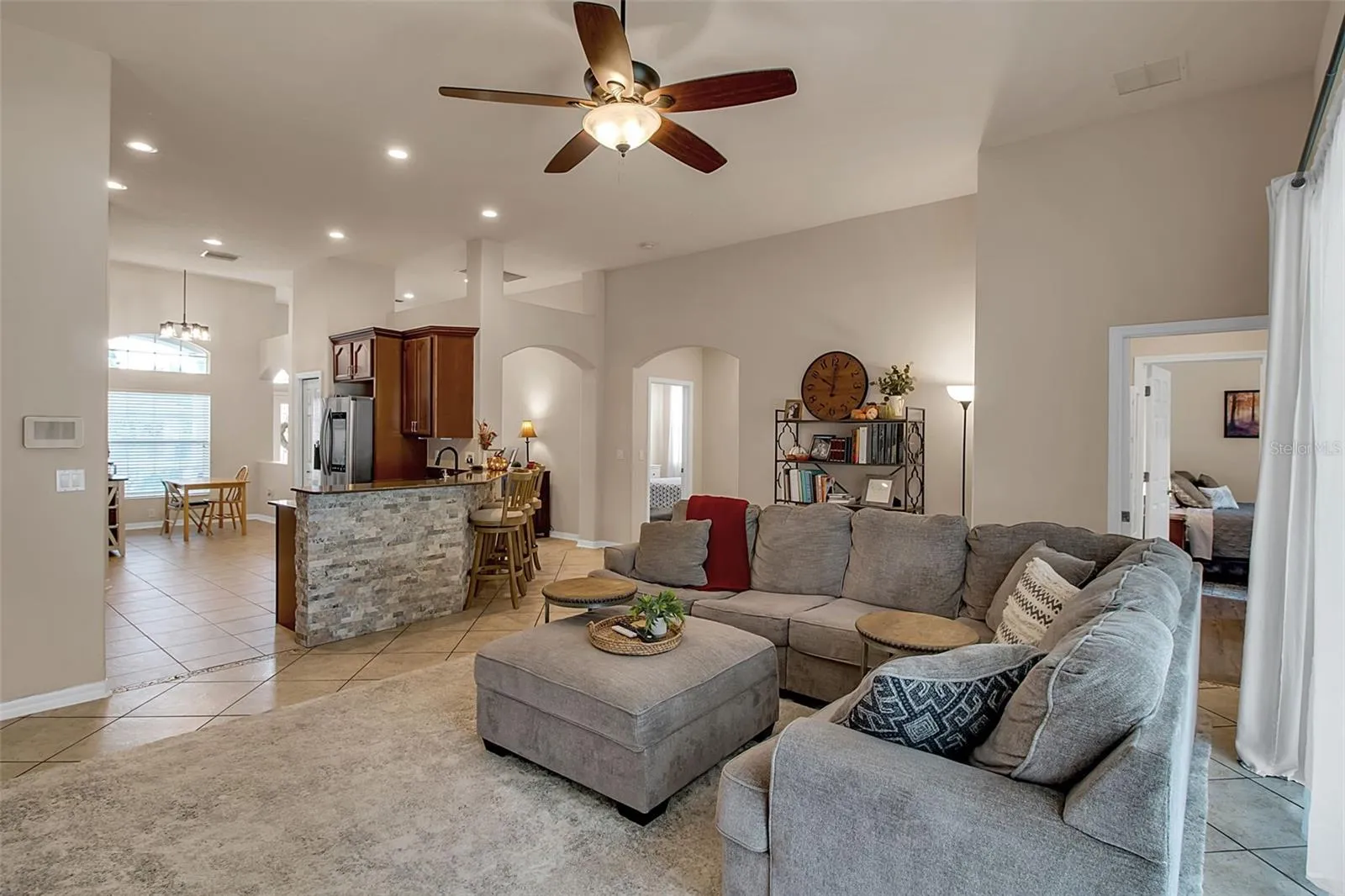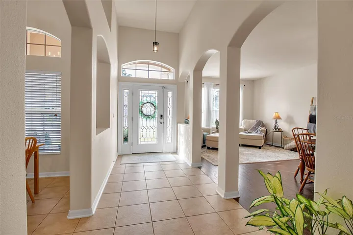 As you step inside, you’re greeted by 12-foot ceilings, arched columns, and sunlit living and dining areas that set the tone for elegant yet comfortable living. The large front windows create a bright, welcoming atmosphere, perfect for morning coffee or an evening unwind with a book in hand. There’s ample space for both a formal dining area and a relaxed family gathering space, allowing the home to adapt beautifully to any lifestyle.