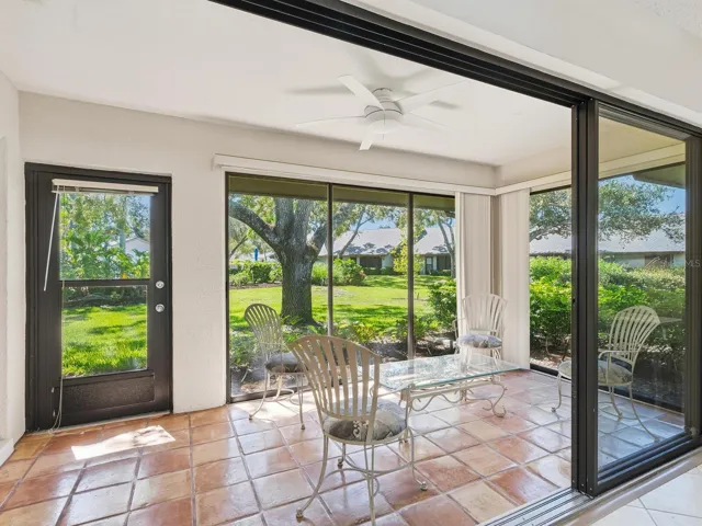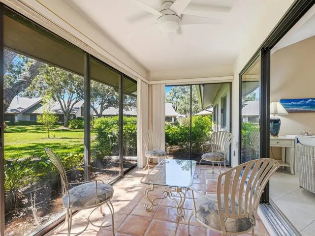Furnished and priced to sell! Easy living in this spotless maintenance-free one-story villa with natural light and gorgeous tile in living areas in The Meadows, a park-like oasis in a phenomenal location. A canopied street and charming pergola welcome you home. Inside, you will love the cathedral ceilings, brand new skylights that bathe the great room with soft light, and a relaxing Florida room overlooking a beautiful garden with mature landscaping. The kitchen features stainless steel appliances, white cabinetry and direct access to the private grilling patio. All with ideal southern exposure for light and cheerful winters, 100 feet to the heated pool, just 1.5 miles to Whole Foods and Trader Joe’s, and convenient to all The Meadows has to offer. The Meadows, 1,600 park-like acres in an enviable location, is a resort lifestyle community 15 minutes from downtown. Residents enjoy 14 miles of trails, fun activities and, for a reasonable rate, a fitness center, Junior Olympic pool, 10 pickleball courts, 18-hole golf courses and a top-notch tennis complex. You’ll live near award-winning beaches, remarkable arts and culture, Nathan Benderson Park, Mote SEA Aquarium, Whole Foods, Trader Joe’s and The Mall at University Town Center, a world-class shopping, entertainment and dining destination. A fabulous Florida lifestyle awaits. 2024 shingle roof, 2024 A/C system, 2023 water heater, 2017 re-plumbed, 2015 garage door and above flood plain in zone X.