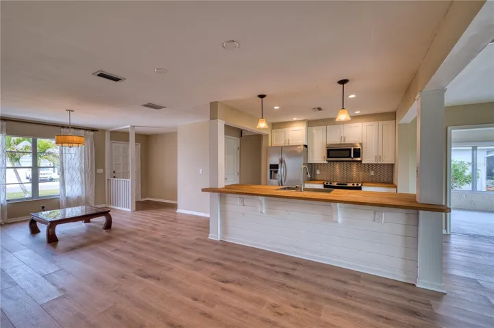 beautiful. The kitchen is open to the gathering area and has been completely updated with newer cabinets, countertops, and stainless steel