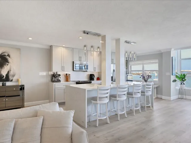 ***WATER VIEWS GALORE**** Breathtaking views of the Sarasota Bay, Fabulous sunsets, and unobstructed views of John Ringling Bridge from every room. TURNKEY FURNISHED Condo on Golden Gate Point. Remodeled 2-bedroom, 2-bathroom waterfront condo has classic style with modern conveniences. Perfect setting for everyday living and special occasions. Whirlpool stainless steel appliances (Refrigerator, Microwave, Dishwasher and Range). Laminate flooring throughout main living area. Chef’s delight as well as an entertainer’s dream. The gourmet kitchen has custom cabinetry and an oversized quartz island with seating. The primary bedroom features a walk-in closet, a king-sized bed, and an updated primary bathroom. The guest bedroom features a good-sized built-in closet and a queen-size bed. The laundry room comes with a washer, dryer, and lots of storage for your convenience. Most windows have plantation shutters. The main water view windows have motorized blinds. Amenities include a fitness room, Bayfront social area, a day dock with boat slips, guest parking and one premium covered parking for your convenience. Luxurious condo close to downtown Sarasota, Marina Jacks, St. Armand’s Circle, Sarasota Memorial Hospital, Marie Selby Botanical Gardens, Bayfront Park and Van Wezel Performing Arts Hall to name a few. Only 3 miles or less to Lido Beach, St. Armand’s Circle and Longboat Key. Only 4 miles to Sarasota Bradenton International Airport. Easy to show. $4500 is annual rental rate. Minimum 3-month rental per HOA rules. Sorry NO PETS FOR TENANTS PER HOA RULES.