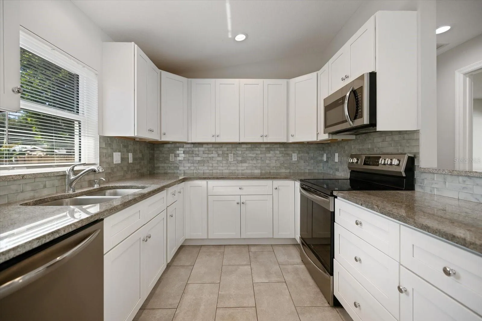 Step into the kitchen, where sleek stainless steel appliances and light wood cabinets elevate your culinary experience. The master bathroom features a convenient walk-in shower, while the second bathroom offers a relaxing tub. An oversized utility room includes a handy utility sink and tenants need to supply their own washer and dryer.