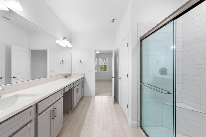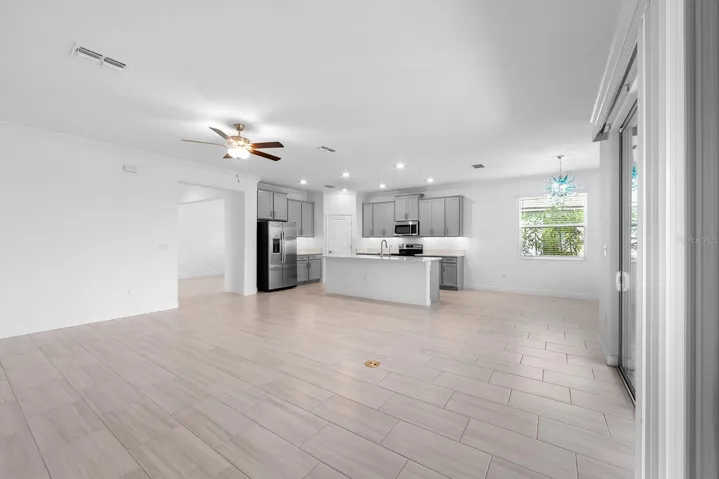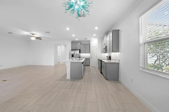 Spanning 1,961 sq. ft., the open-concept layout is filled with natural light and elegant finishes. The gourmet kitchen features quartz countertops, a reverse-osmosis under-sink filtration system, a spacious walk-in pantry, and abundant cabinetry – perfect for cooking and entertaining. Throughout the home, you’ll find refined touches such as crown molding and cordless blinds for a modern, polished feel.